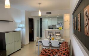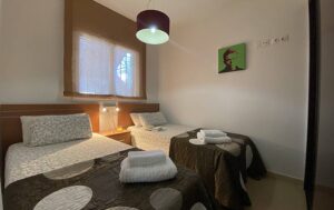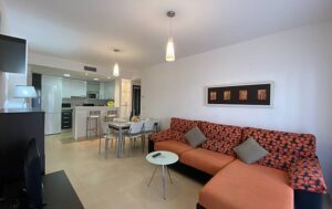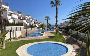 Íbúð í íbúðakjarnanum Azul Beach sem er staðsettur rétt hjá La Mata ströndinni. Íbúðin samanstendur af 2 svefnherbergjum, 2 baðherbergjum, fullbúnu eldhúsi og stofu. Úr stofu er útgengt á góða verönd. Loftkæling er í íbúðinni sem og WiFi sem er innifalið í verði. Einkabílastæði fylgir í bílageymslu.