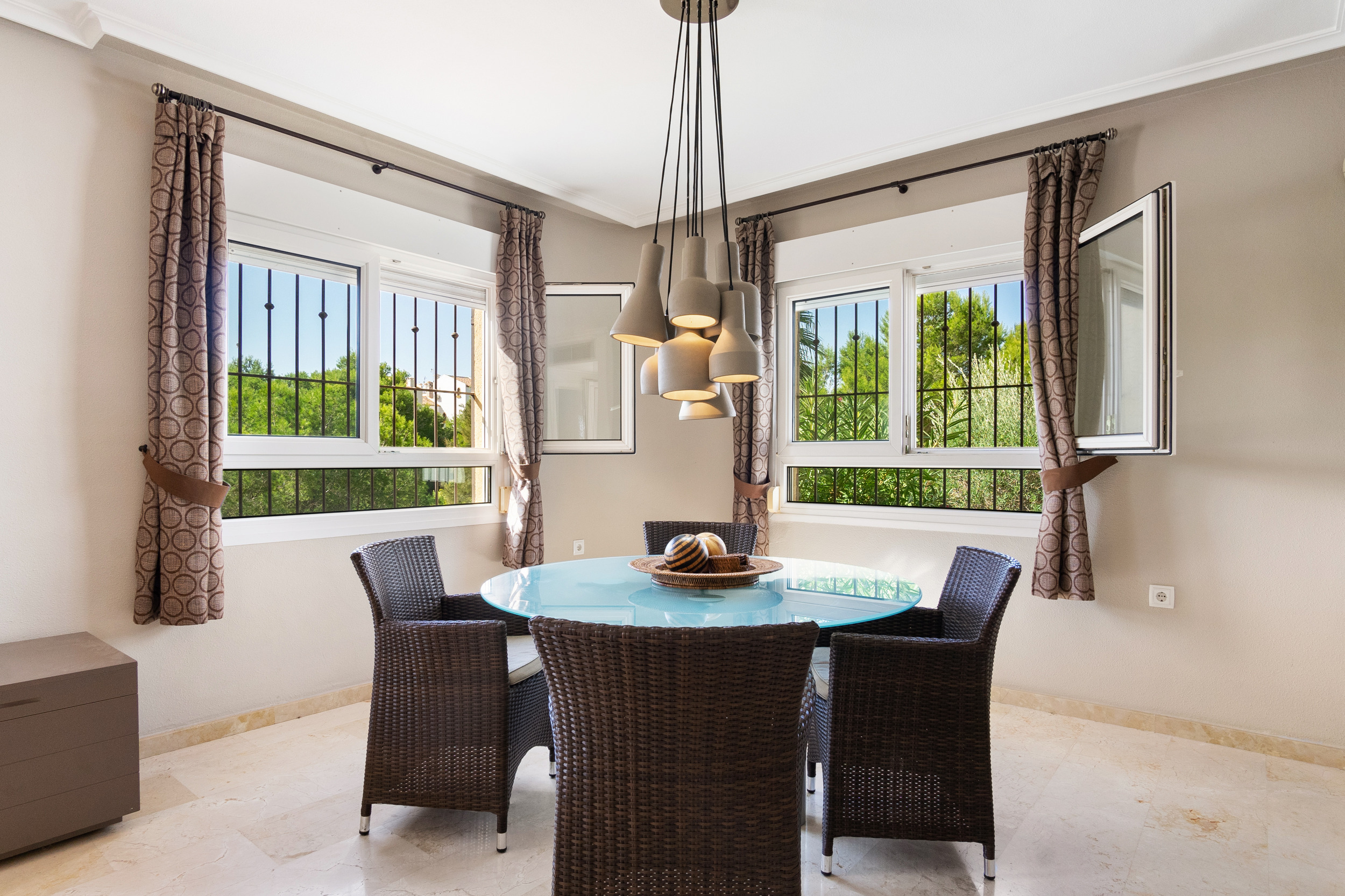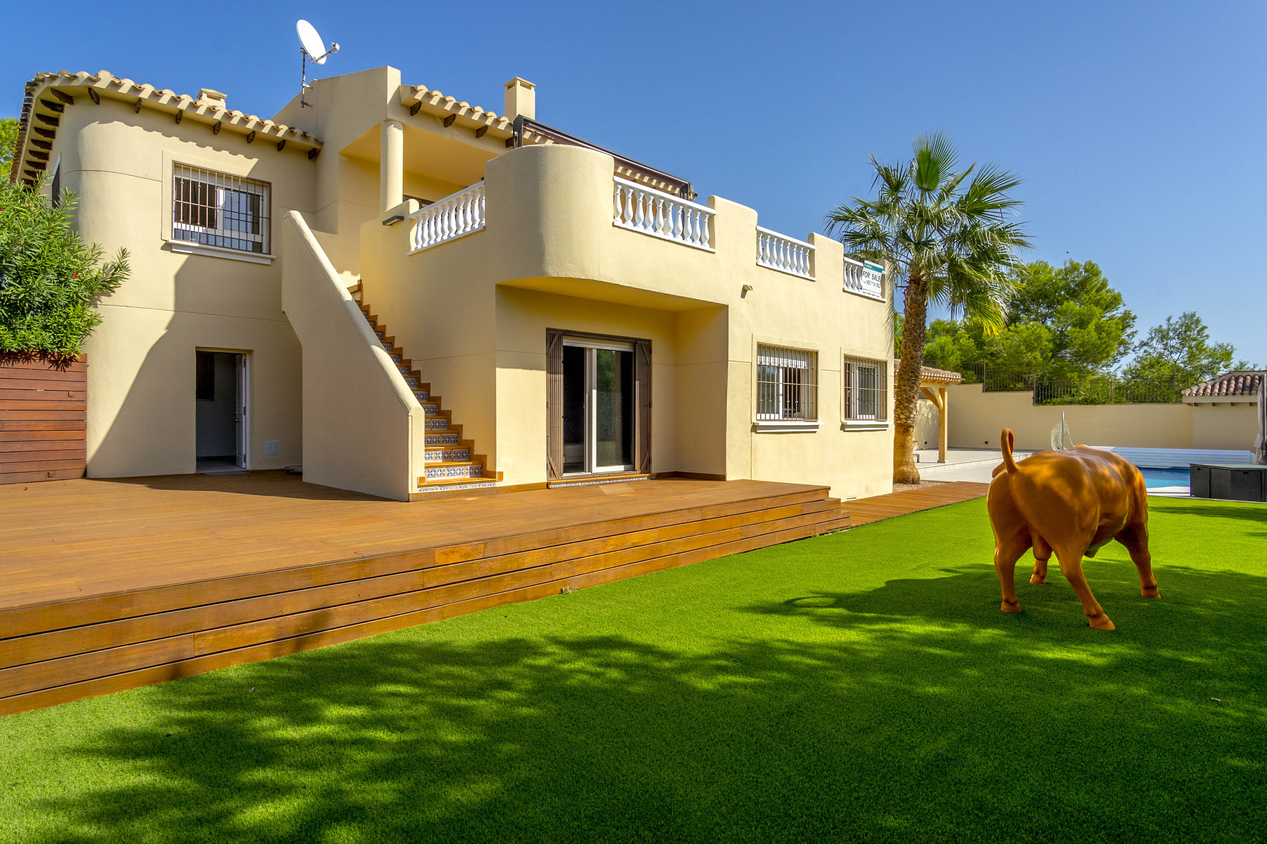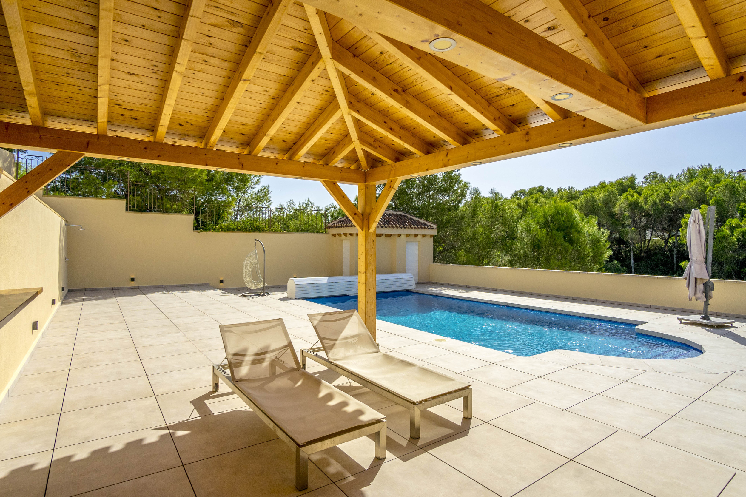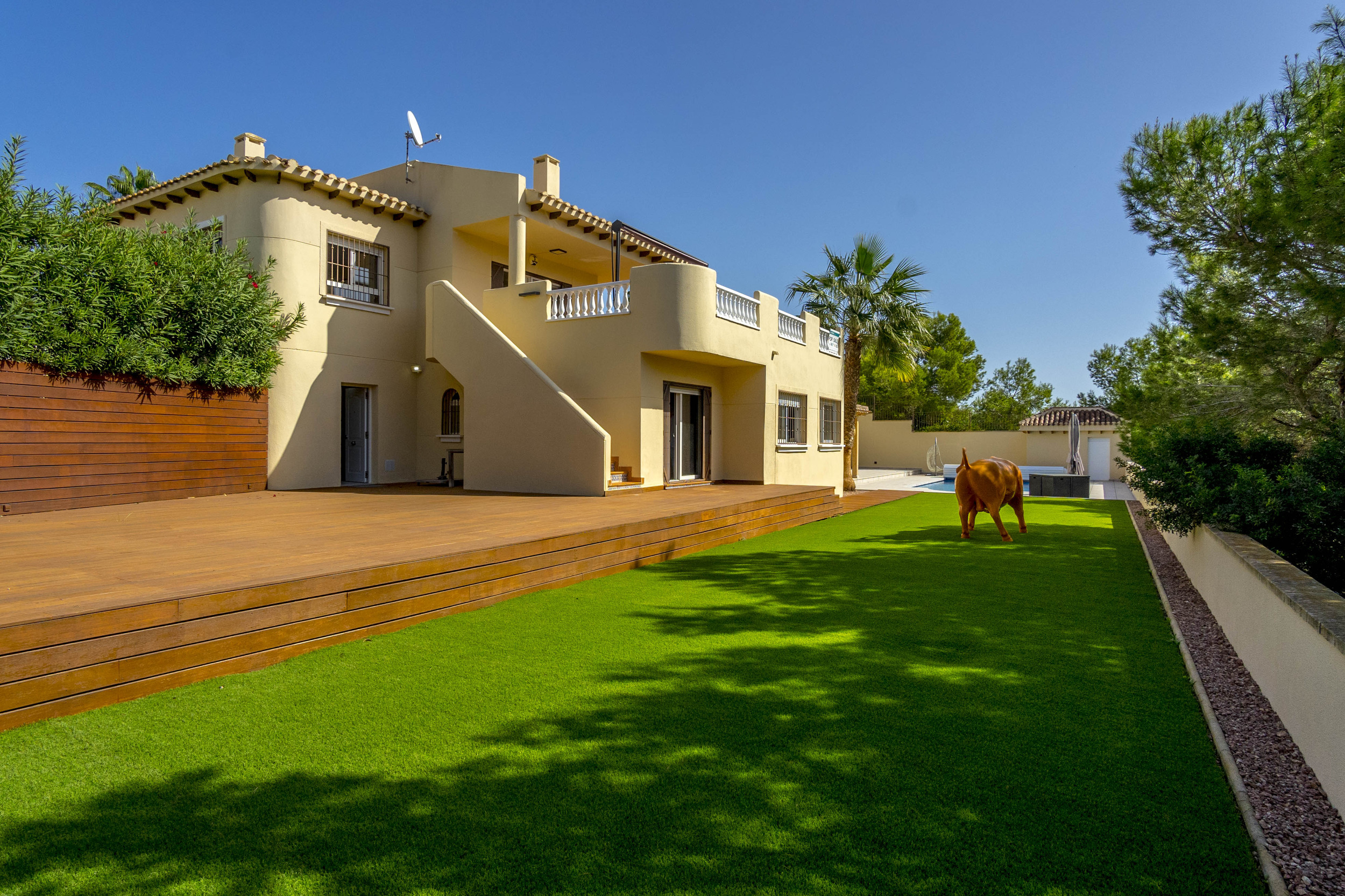 Glæsilegt einbýlishús í Los Dolses til sölu. Húsið sem er 240m2 samanstendur af 4 svefnherbergjum, 3 baðherbergjum, stofu/borðstofu og opnu eldhúsi. Úr stofunni er útgengt á 60m2 verönd en einnig er sólþak á húsinu með útsýni að sjónum. Útisvæðið er mjög gott en þar er m.a. útieldhús og upphituð sundlaug. Virkilega snyrtilegur og fallegur garður en lóðin er 747m2. Bílageymsla er undir húsinu með 2 bílastæðum og einnig eru 2 geymslur.