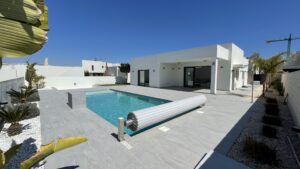 Virkilega fallegt og vandað einbýlishús í Rojales. Húsið er á einni hæð og er 120m2 og stendur á 426m2 lóð. Það samanstendur af 3 svefnherbergjum, 2 baðherbergjum, opnu eldhúsi og rúmgóðri stofu/borðstofu. Útisvæðið er virkilega rúmgott en í garðinum er einkasundlaug. Úðakerfi er í garðinum og sólarsella. Í baðherbergjum er gólfhiti.