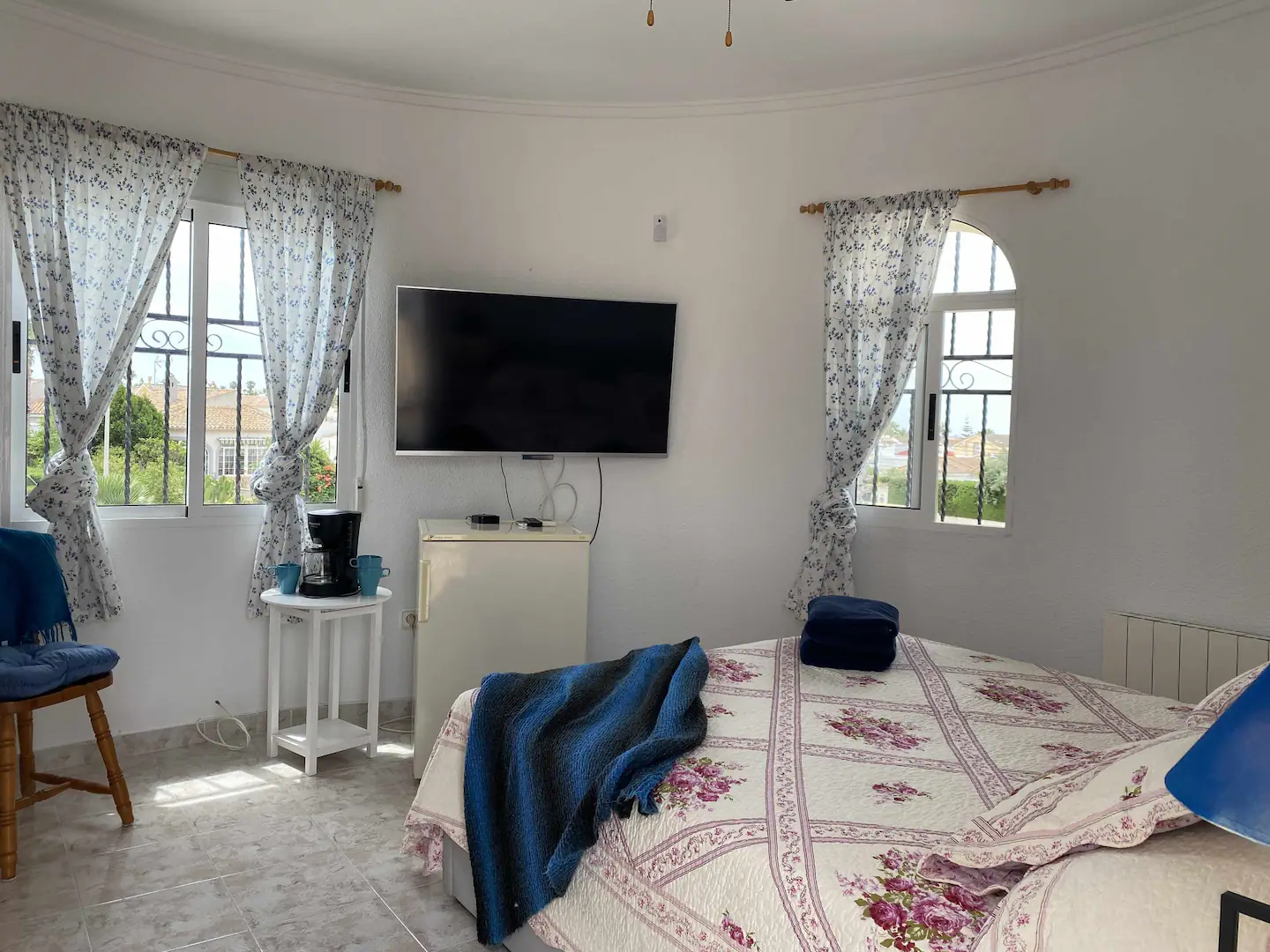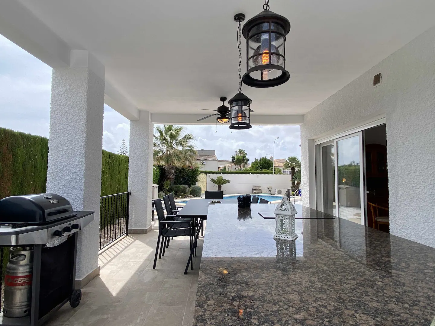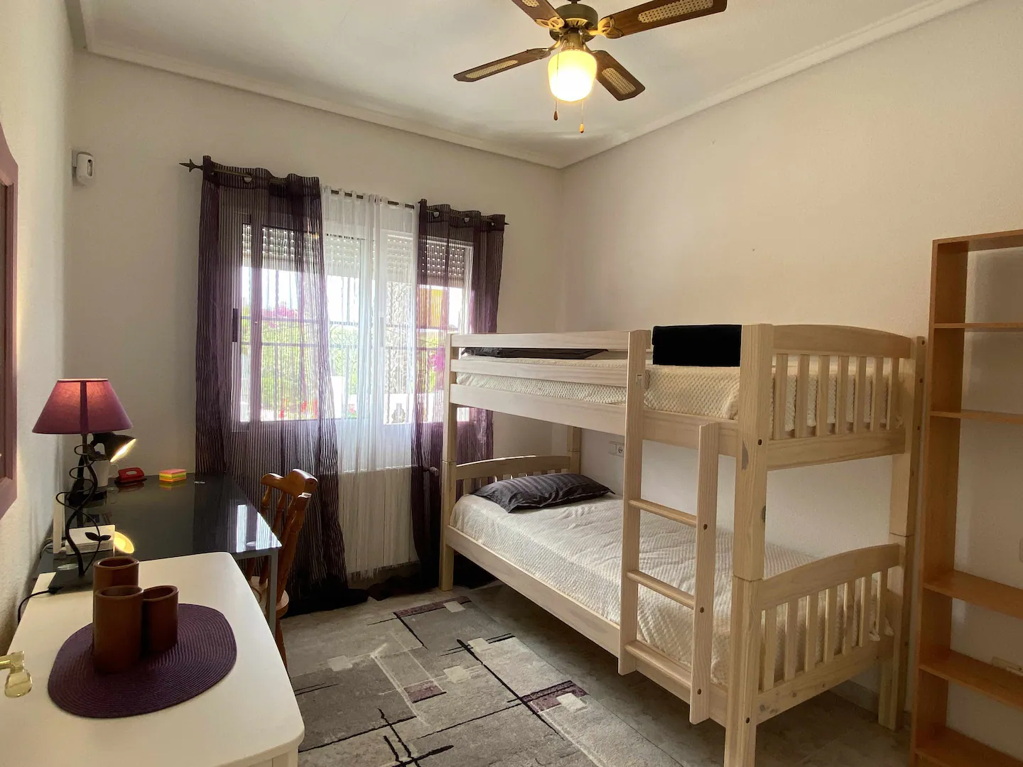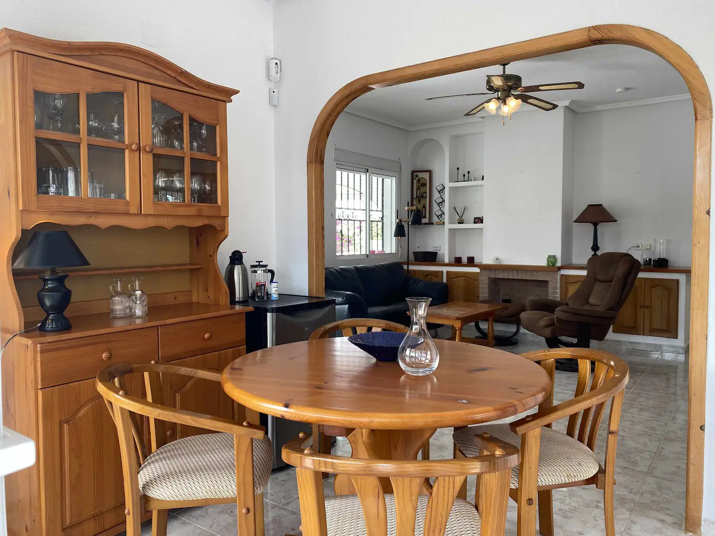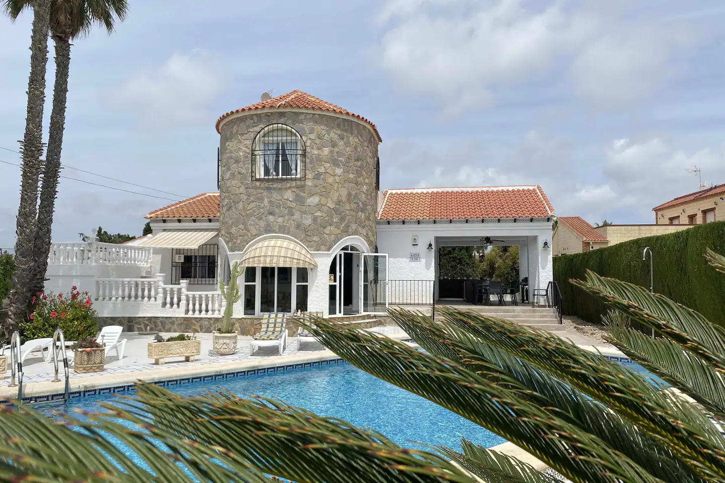 Stórt og gott hús til orlofsleigu í Torrevieja. Húsið samanstendur af 4 svefnherbergjum, 4 baðherbergjum, eldhúsi og stofu/borðstofu. Húsið skiptist í parta og er hægt að leigja aðeins hluta eða allt húsið. Í aðalhúsinu eru 2 svefnherbergi (annað með hjónarúmi og hitt með kojum), baðherbergi með sturtu, fullbúið eldhúsi og stofa/borðstofa. Í sama húsi en með annan inngang er svefnherbergi, baðherbergi, loftkæling, ítill ísskápur og sjónvarp. Ef farið er upp tröppur fyrir utan húsið má finna fjórða herbergið en þar er einnig baðherbergi, loftkæling og sjónvarp. Fyrir utan húsið eru fleiri en ein verönd en sú besta er með útieldhúsi þar sem dásamlegt er að elda og njóta matar utandyra. Í garðinum sem er stór og góður er einnig einkasundlaug. Hægt er að biðja um upphitaða laug en það kostar þá aukalega.