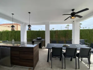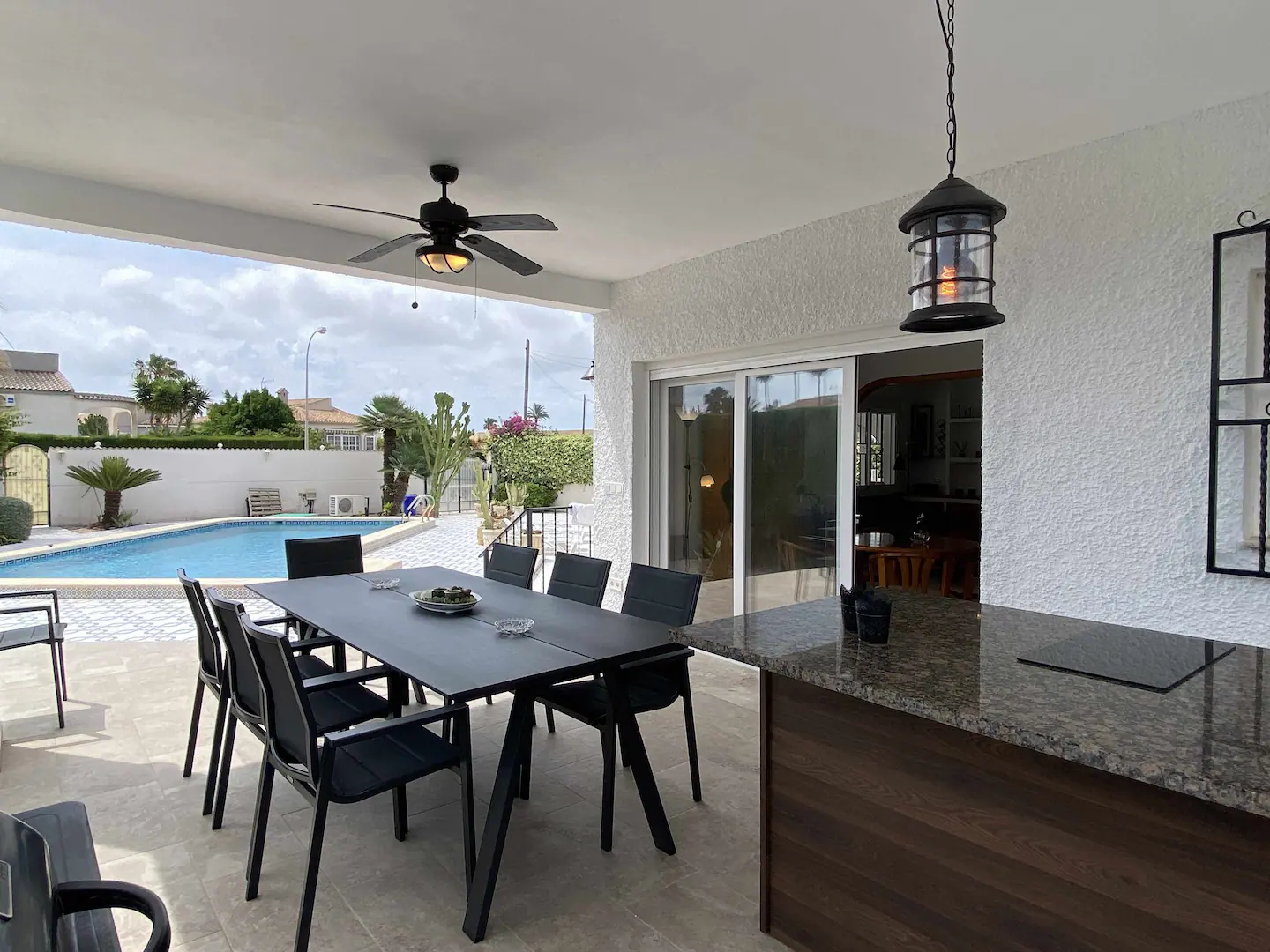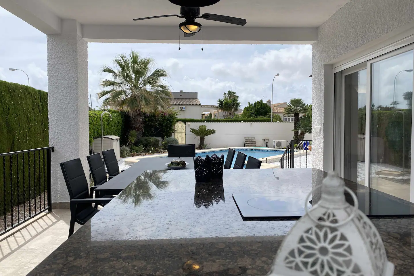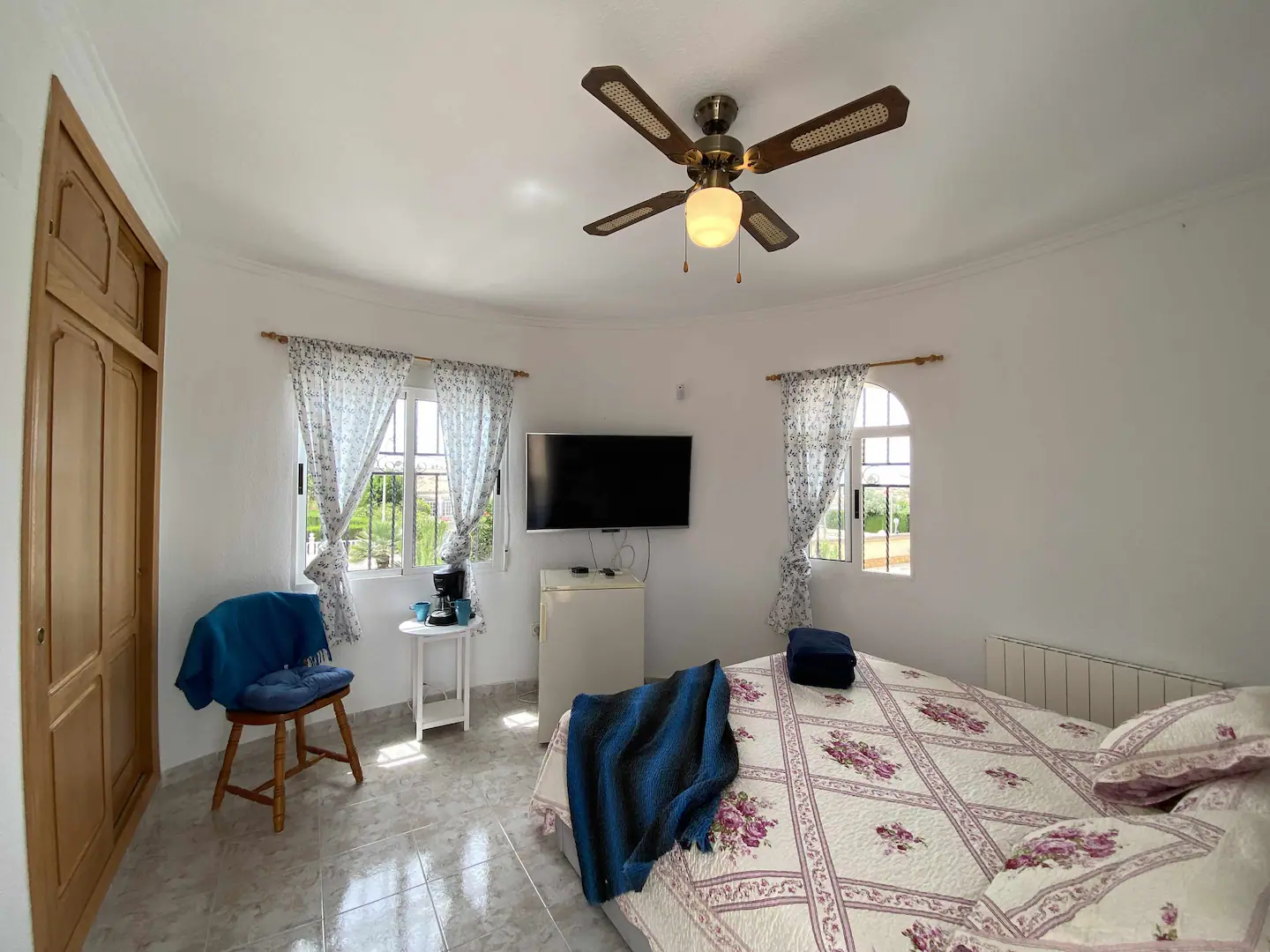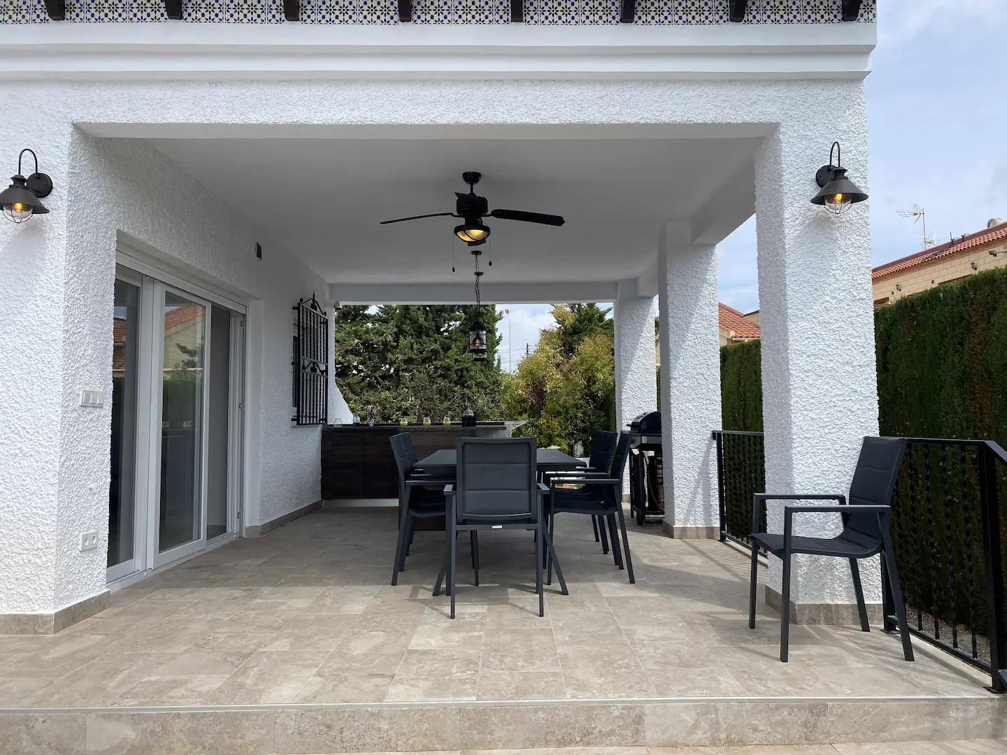 Stórt og gott hús til orlofsleigu í Torrevieja. Húsið samanstendur af 4 svefnherbergjum, 4 baðherbergjum, eldhúsi og stofu/borðstofu. Húsið skiptist í parta og er hægt að leigja aðeins hluta eða allt húsið. Í aðalhúsinu eru 2 svefnherbergi (annað með hjónarúmi og hitt með kojum), baðherbergi með sturtu, fullbúið eldhúsi og stofa/borðstofa. Í sama húsi en með annan inngang er svefnherbergi, baðherbergi, loftkæling, ítill ísskápur og sjónvarp. Ef farið er upp tröppur fyrir utan húsið má finna fjórða herbergið en þar er einnig baðherbergi, loftkæling og sjónvarp. Fyrir utan húsið eru fleiri en ein verönd en sú besta er með útieldhúsi þar sem dásamlegt er að elda og njóta matar utandyra. Í garðinum sem er stór og góður er einnig einkasundlaug. Hægt er að biðja um upphitaða laug en það kostar þá aukalega.