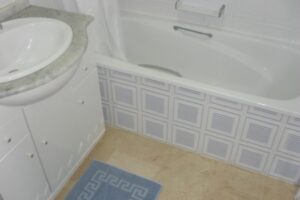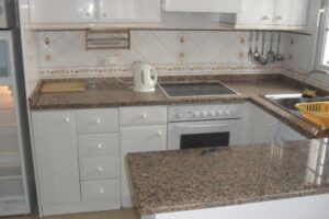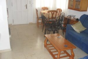 Hús til skammtíma/vetrarleigu í Playa Flamenca. Húsið sem er á 2 hæðum samanstendur af 3 svefnherbergjum, 2 baðherbergjum, eldhúsi og stofu/borðstofu. Fyrir framan húsið er lítil verönd og garður en einnig er útgengt af efri hæð á svalir. Baðkar er í öðru baðherberginu en sturta í hinu.