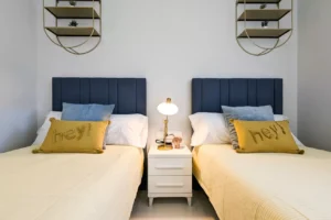 Virkilega hugguleg íbúð til orlofsleigu á Benidorm. Íbúðin er 78m2 og samanstendur af 2 svefnherbergjum, 2 baðherbergjum, eldhúsi og stofu/borðstofu. Útgengt er á rúmgóðar svalir þar sem tilvalið er að njóta góðrar máltíðar og baða sig í sólinni. Íbúðin er staðsett á 10.hæð í lyftuhúsi með góðum garði, þar sem íbúar hafa aðgang að sameiginlegri sundlaug og sauna. Bílastæði fylgir íbúðinni. Íbúðin er fullbúin fyrir 5 manns.