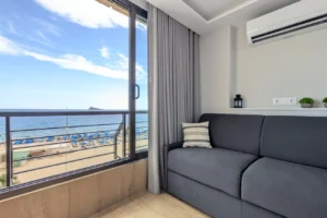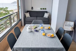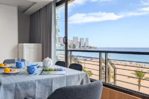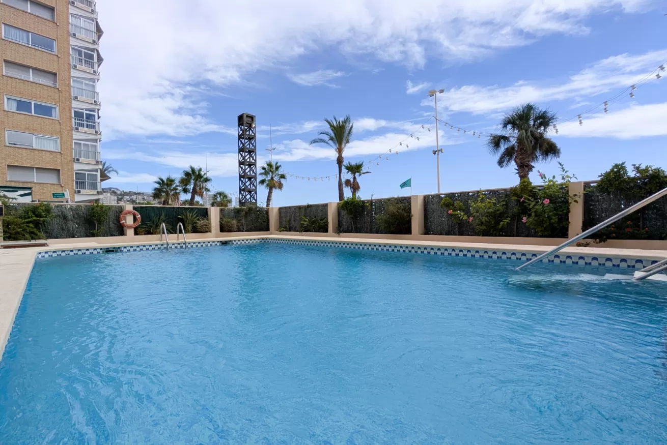 Hugguleg íbúð til orlofsleigu á Benidorm. Íbúðin samanstendur af 1 rúmgóðu svefnherbergi, 1 baðherbergi, eldhúsi og stofu/borðstofu. Í íbúðinni eru yfirbyggðar svalir þar sem hægt er að opna glerflekana alveg þannig að þær eru í raun framlenging á íbúðinni. Íbúðin er smekklega innréttuð og fullbúin fyrir 4 manneskjur. Lokaður garður er við húsið þar sem íbúar hafa aðgang að sameiginlegri sundlaug.