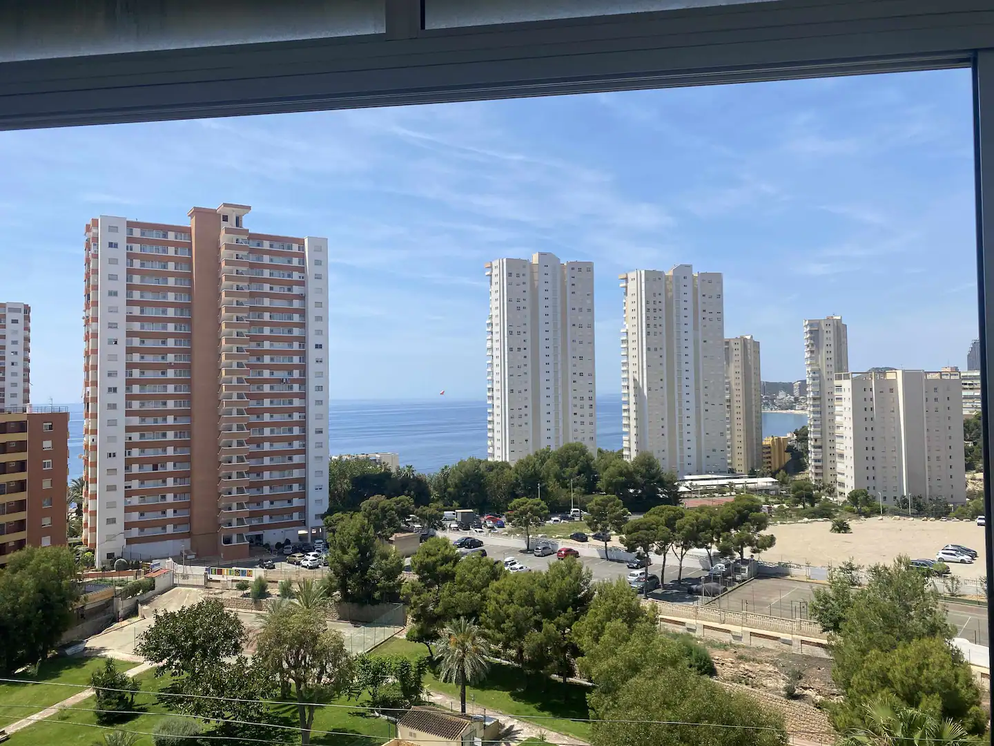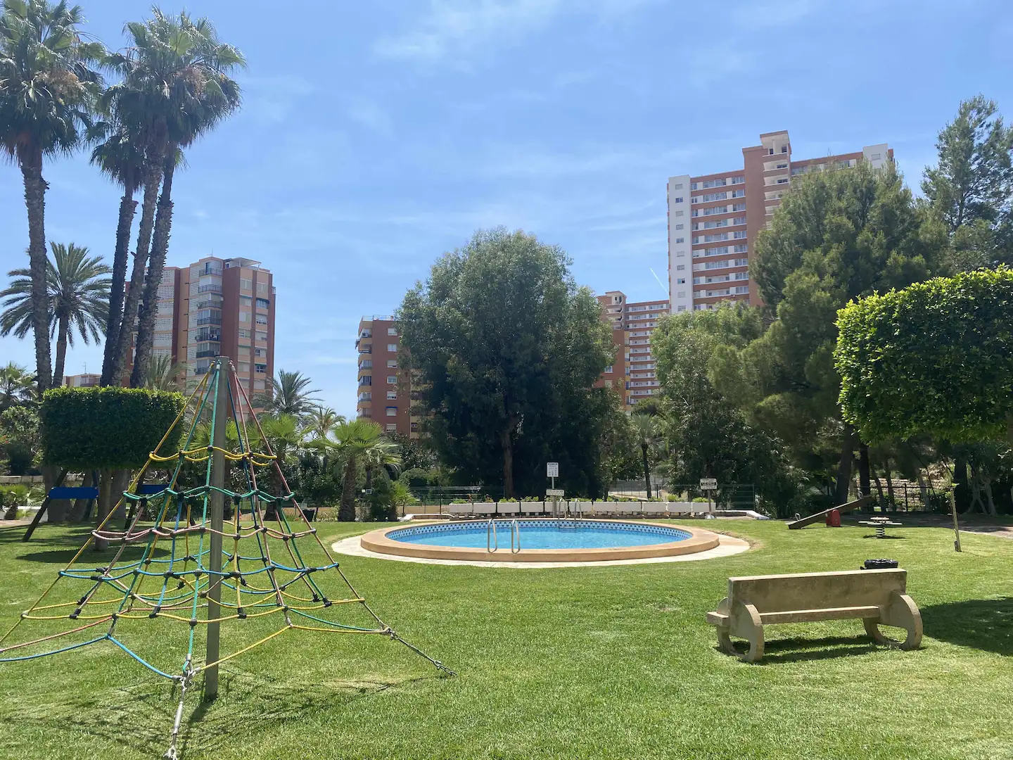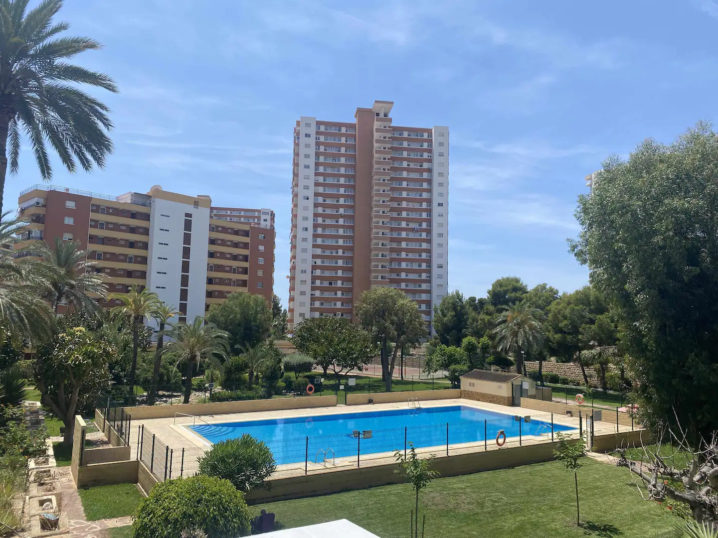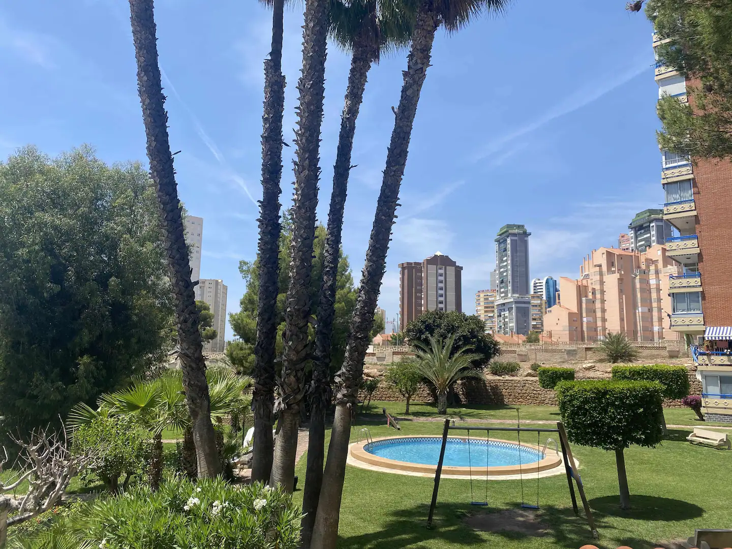 Virkilega falleg íbúð til orlofsleigu á Benidorm. Íbúðin samanstendur af 1 svefnherbergi, 1 baðherbergi, eldhúsi og stofu/borðstofu. Úr stofunni er útgengt á góðar svalir með virkilega góðu útsýni yfir sameiginlegan sundlaugagarð. Íbúðin er á 8.hæð. Húsið er staðsett í góðum lokuðum kjarna með stórum garði þar sem íbúar hafa aðgang að sundlaug, leiksvæði fyrir börnin og tennisvelli. Innan kjarnans er einnig lítill bar þar sem hægt er að fá sér kaffibolla eða kæla sig niður með drykk. Loftkæling er í svefnherbergi en viftur í loftum í öðrum rýmum.