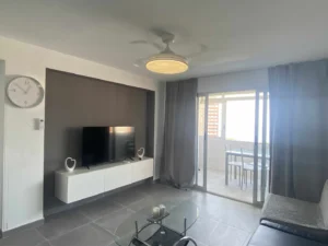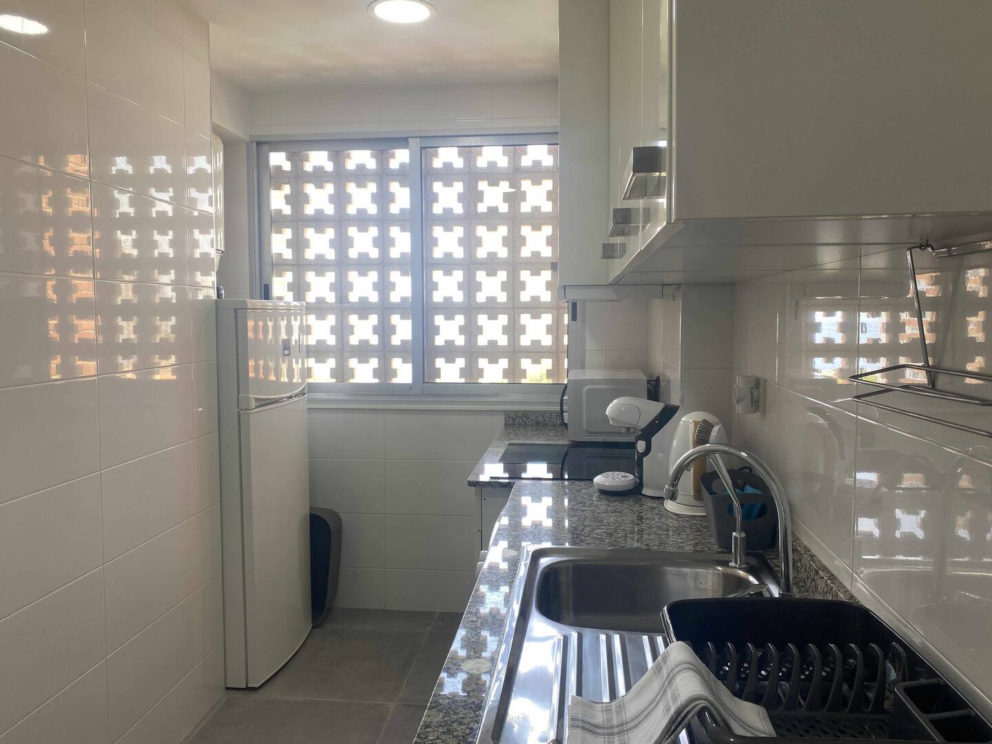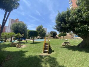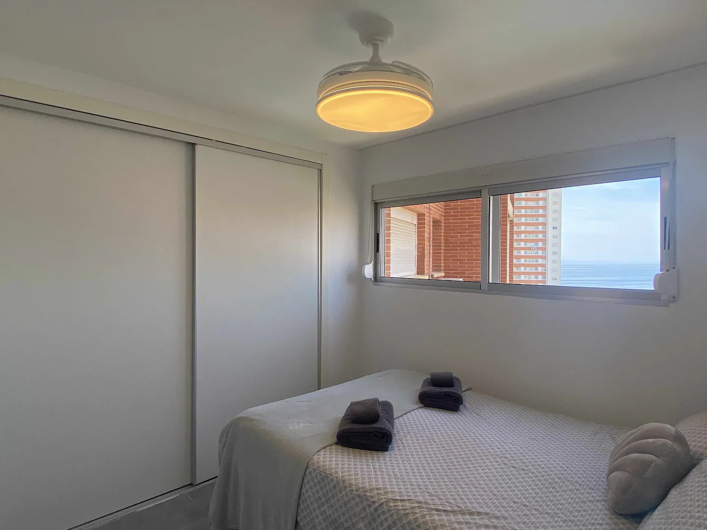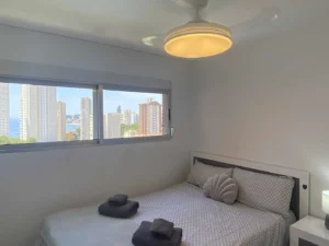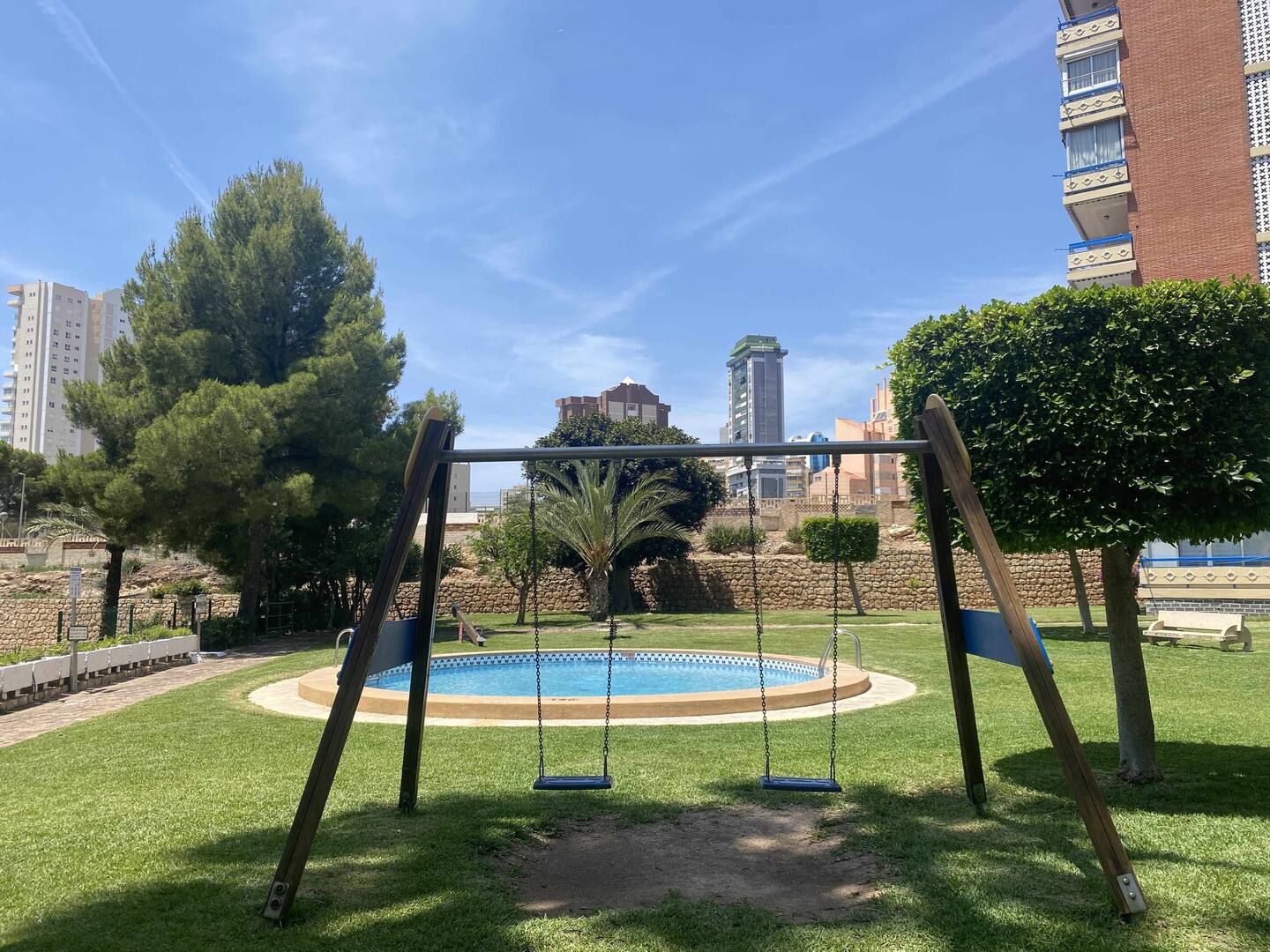 Virkilega falleg íbúð til orlofsleigu á Benidorm. Íbúðin samanstendur af 1 svefnherbergi, 1 baðherbergi, eldhúsi og stofu/borðstofu. Úr stofunni er útgengt á góðar svalir með virkilega góðu útsýni yfir sameiginlegan sundlaugagarð. Íbúðin er á 8.hæð. Húsið er staðsett í góðum lokuðum kjarna með stórum garði þar sem íbúar hafa aðgang að sundlaug, leiksvæði fyrir börnin og tennisvelli. Innan kjarnans er einnig lítill bar þar sem hægt er að fá sér kaffibolla eða kæla sig niður með drykk. Loftkæling er í svefnherbergi en viftur í loftum í öðrum rýmum.