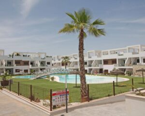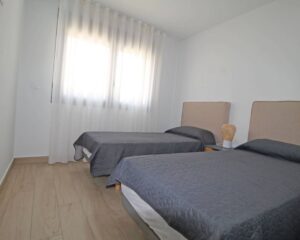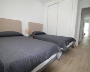 Falleg íbúð á jarðhæð í góðum íbúðakjarna í Torrevieja. Íbúðin samanstendur af 2 svefnherbergjum, 2 baðherbergjum, eldhúsi og stórri stofu/borðstofu. Í öðru svefnherberginu er hjónarúm en í hinu eru tvö einstaklingsrúm. Í stofunni sem er mjög rúmgóð, er þægilegur 3 sæta sófi og hægindastóll og í borðstofunni er borð og stólar fyrir 4 manneskjur. Útgengt er á góða verönd bæði fyrir framan og aftan íbúðina en önnur veröndin snýr út í sameiginlegan sundlaugargarð sem er virkilega fallegur. Í íbúðinni er WiFi og loftkæling bæði fyrir heitt og kalt. Bílastæði fylgir í kjallara.
