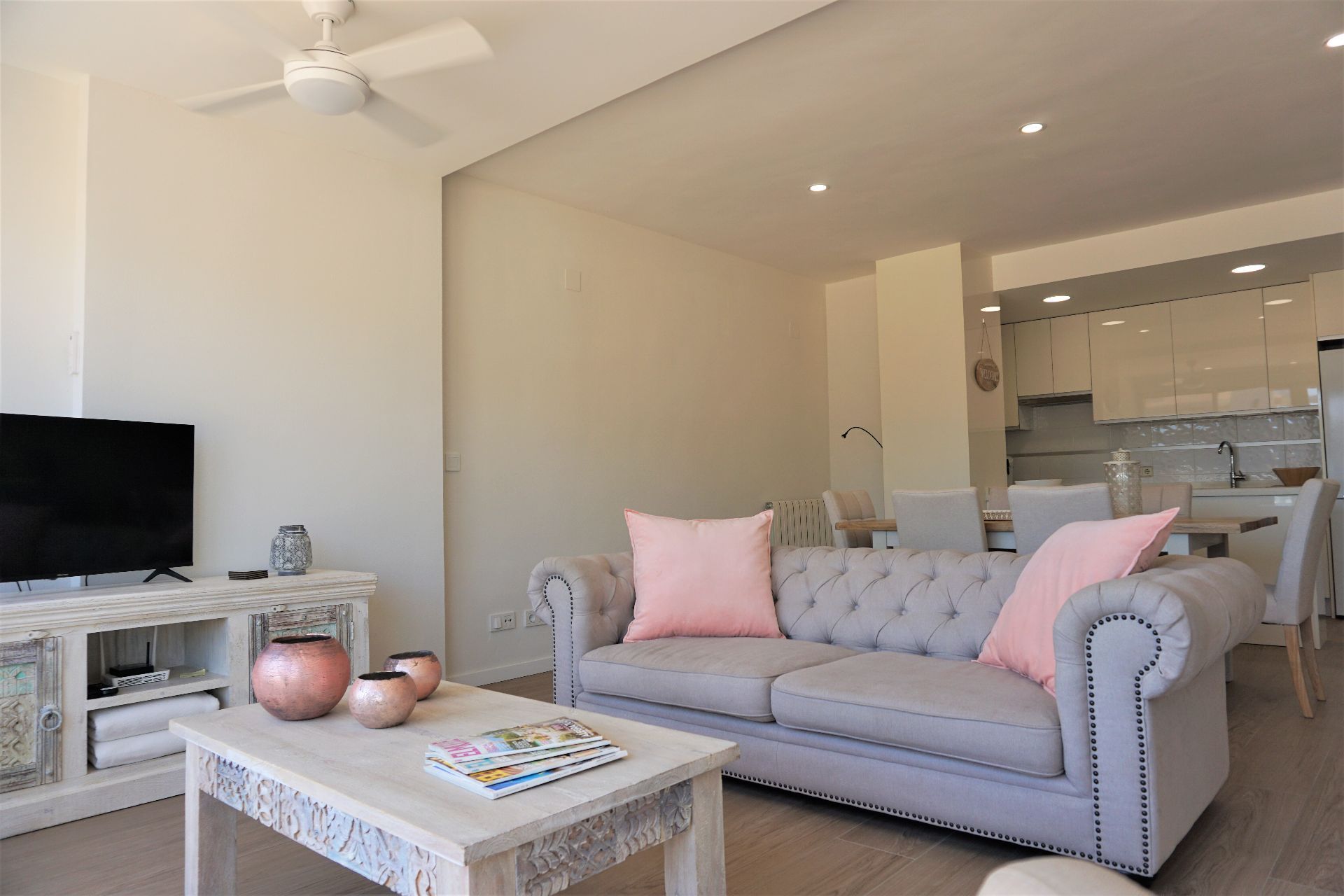 Mikið endurnýjuð og virkilega falleg íbúð til sölu í Albir. Íbúðin sem er 75m2 samanstendur af 1 svefnherbergi, 1 baðherbergi, eldhúsi og stofu/borðstofu. Íbúðin er virkilega björt og falleg. Í stofunni eru stórir rafdrifnir gluggahlerar og er hiti í gólfum. Íbúðin er staðsett í 5 hæða lyftuhúsi í virkilega góðum kjarna þar sem íbúar hafa aðgang að sameiginlegum garði með sundlaug, leiksvæði og tennisvelli. Bílastæði í bílageymslu fylgir sem og geymsla.