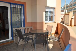 Vel staðsett íbúð á jarðhæð í Aquamarina sem leigist í vetrarleigu. Íbúðin sem er 70m2 samanstendur af 2 svefnherbergjum, 1 baðherbergi, eldhúsi og stofu/borðstofu. Hún er staðsett í lokuðum kjarna þar sem íbúar hafa aðgang að bílastæðum og sameiginlegri sundlaug. Úr stofunni er útgengt á svalir. Loftkæling og WiFi eru í íbúðinni.
