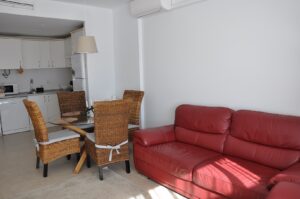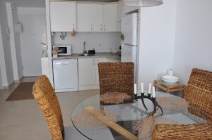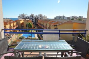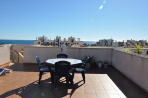 Penthouse íbúð til orlofs- eða vetrarleigu í Aquamarina. Íbúðin samanstendur af 2 svefnherbergjum, 1 baðherbergi, gestasnyrtingu, eldhúsi og stofu/borðstofu. Sofan er björt og rúmgóð en þaðan er útgengt stórar og góðar svalir. Af svölunum er stigi sem liggur upp á einka sólþak með glæsilegu útsýni.
