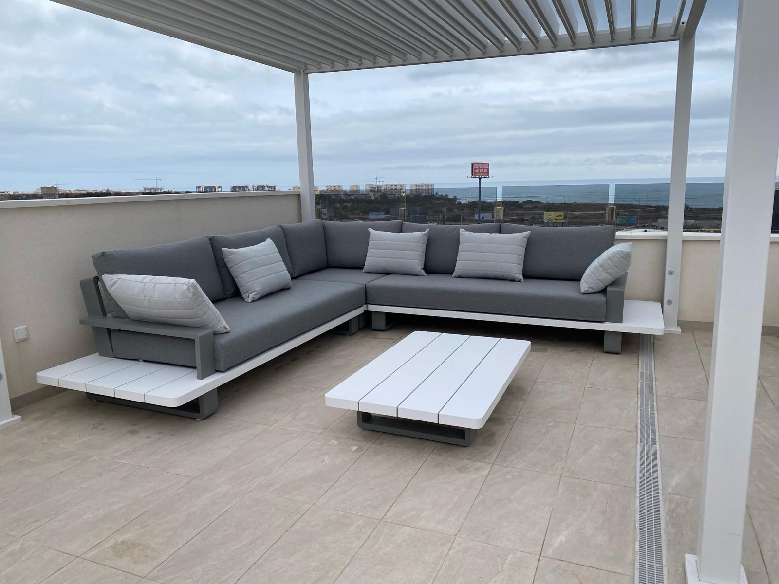Falleg þakíbúð til orlofs- eða vetrarleigu í La Zenia. Íbúðin samanstendur af 2 rúmgóðum svefnherbergjum, 2 baðherbergjum, eldhúsi og stofu/borðstofu. Útgengt er úr stofu og svefnherbergjum á rúmgóðar svalir en þaðan er stigi upp á stórt og gott sólþak þar sem tilvalið er að njóta sólarinnar. Íbúðin er staðsett í góðum, lokuðum kjarna þar sem íbúar hafa aðgang að garði með sameiginlegri sundlaug, góðri sólbaðsaðstöðu og líkamsrækt.