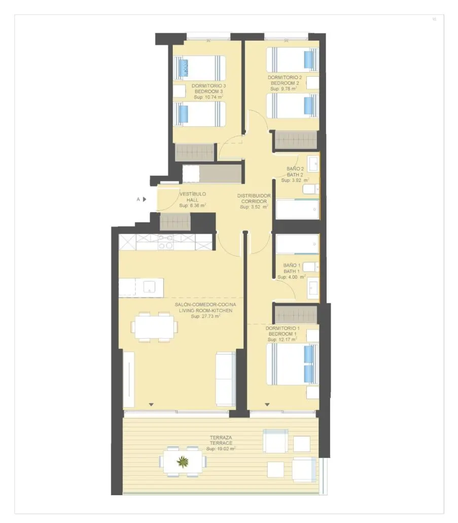 Falleg íbúð til sölu í Campoamor. Íbúðin sem er 104m2, samanstendur af 3 svefnherbergjum, 2 baðherbergjum, eldhúsi og stofu/borðstofu. Útgengt er úr stofunni á góðar 19m2 svalir þar sem tilvalið er að njóta sólarinnar. Íbúðin er staðsett í góðum, lokuððum kjarna þar sem íbúar hafa aðgang að sameiginlegri sundlaug, líkamsrækt og sólþaki. Bílastæði fylgir íbúðinni innan kjarnans.