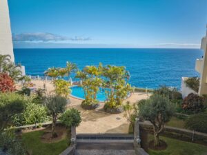 Falleg íbúð til orlofs- eða vetrarleigu í borginni Funchal í Madeira. Íbúðin sem er í góðu lyftuhúsi, samanstendur af 3 svefnherbergjum, 1 baðherbergi, eldhúsi og stofu/borðstofu. Úr stofunni er útgengt á góðar svalir með frábæru útsýni beint út á Atlantshafið. Íbúðin er í góðum lokuðum kjarna, rétt við sjóinn en í garðinum hafa íbúar aðgang að sameiginlegri sundlaug og góðri sólbaðsaðstöðu. Loftkæling er í íbúðinni og bílastæði fylgir.