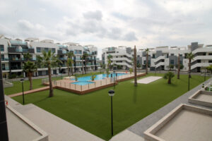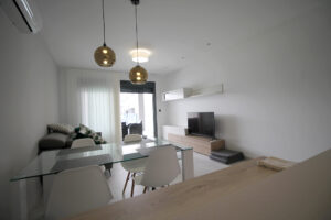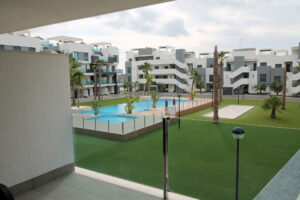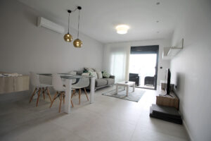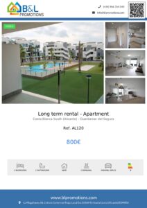 Virkilega hugguleg íbúð til vetrarleigu (sept-apríl) í Guardamar del Segura. Íbúðin samanstendur af 2 svefnherbergjum, 2 baðherbergjum, eldhúsi og stofu/borðstofu. Úr stofunni er útgengt á stórar og rúmgóðar svalir þar sem tilvalið er að njóta sólarinnar, en þær snúa út í sameiginlegan sundlaugagarð. Bílageymsla er í kjarnanum.