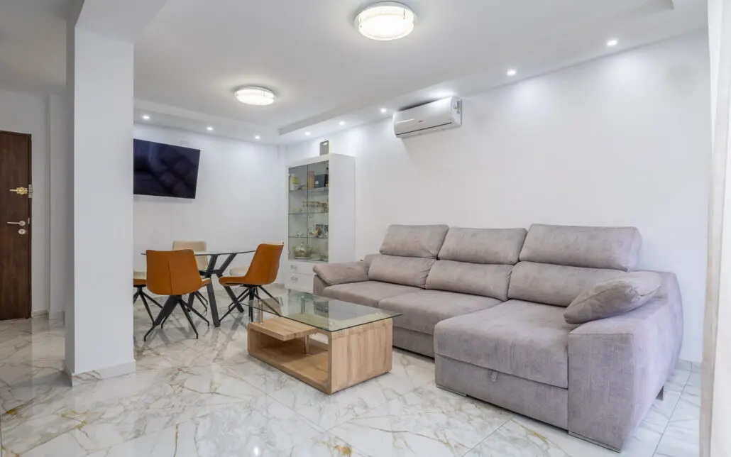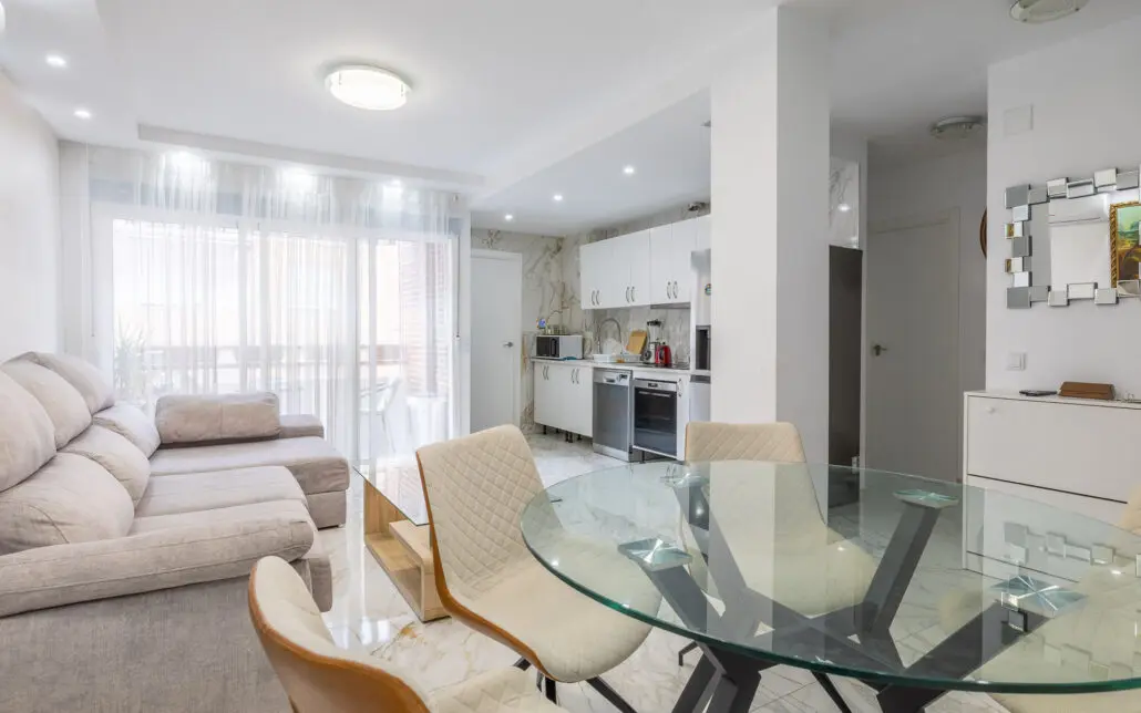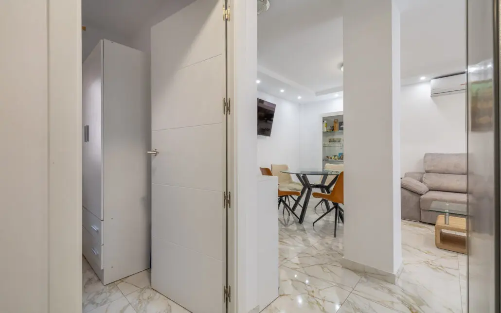 Góð íbúð til sölu í hjarta Torrevieja. Íbúðin sem er 68m2, samanstendur af 2 svefnherbergjum, 1 baðherbergi, opnu eldhúsi, þvottahúsi og stofu/borðstofu. Úr stofunni er útgengt á fínar svalir sem snúa í vestur. Lyfta er í húsinu og loftkæling er í íbúðinni. Íbúðin er nýuppgerð og í fullkomnu standi.