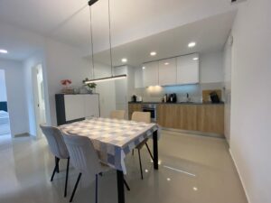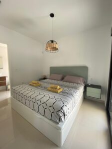 Falleg íbúð til orlofs- eða vetrarleigu í La Finca Golf, Algorfa. Íbúðin sem er á jarðhæð, samanstendur af 2 svefnherbergjum, 2 baðherbergjum, eldhúsi og stofu/borðstofu. Úr stofunni er útgengt á litla verönd og í sólríkan garð, þar sem tilvalið er að njóta. Íbúðin er staðsett í góðum, lokuðum kjarna þar sem íbúar hafa aðgang að sameiginlegri sundlaug og leiksvæði fyrir börnin.