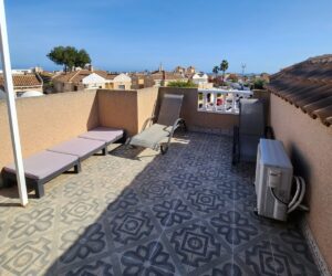 Íbúð í La Mata til langtímaleigu. Íbúðin sem er á efri hæð í 2 hæða húsi, samanstendur af 2 svefnherbergjum, 1 baðherbergi, eldhúsi og stofu. Úr stofunni er útgengt á litlar svalir en einnig er stigi upp á sólþak þar sem tilvalið er að njóta sólarinnar. Þar er grill- og þvottaaðstaða. Íbúðin er staðsett í góðum, lokuðum kjarna þar sem íbúar hafa aðgang að sameiginlegri sundlaug.