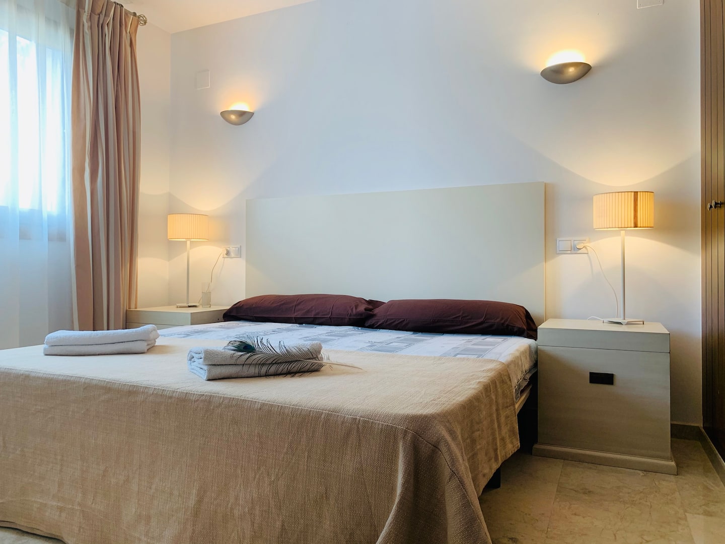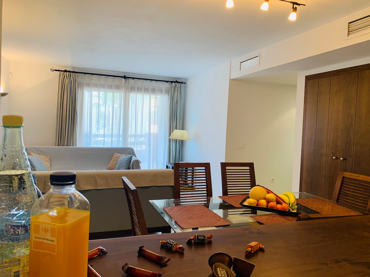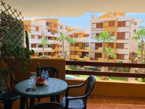 Lýsing: Fallegt íbúð á góðum stað aðeins 500m frá ströndinni í Punta Prima. Íbúðin er í íbúðakjarnanum La Recoleta á 2.hæð í lyftuhúsi. Íbúðin samanstendur af 2 svefnherbergjum, 2 baðherbergjum, opnu eldhúsi og stofu/borðstofu. Stórar og góðar svalir fylgja þar sem er útsýni yfir sameiginlegan garð. Loftkæling er í íbúðinni sem og WiFi.La Recoleta íbúðakjarninn státar af fallegum garði þar sem íbúar hafa aðgang að 2 sameiginlegum sundlaugum. Stutt er í alla þjónustu eins og verslanir, veitingastaði og bari en það er allt í göngufæri. Það eru 2 strendur í 2 mínútna göngufæri og það tekur aðeins 5 mínútur að keyra að La Zenia Boulevard verslunarmiðstöðinni vinsælu þar sem þú finnur allt til alls.Vetrarleiga: 650 evrur á mánuði + reikningarSjá fulla lýsingu