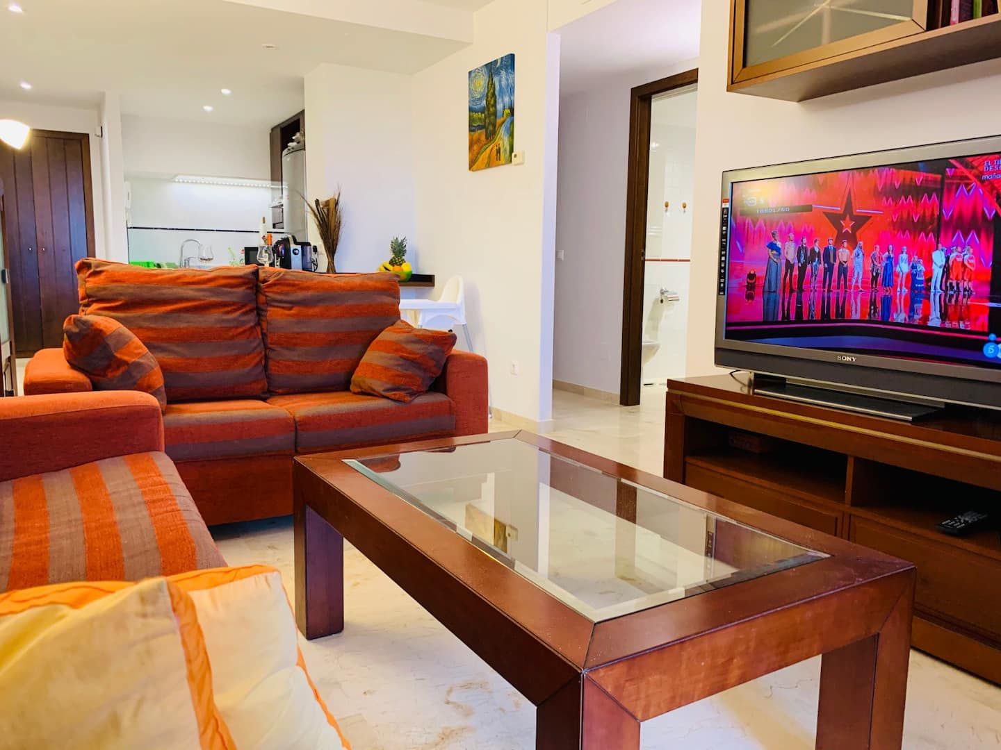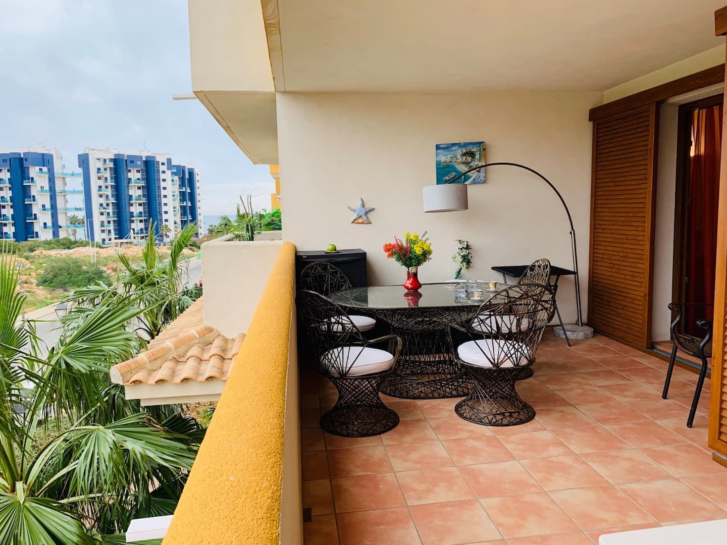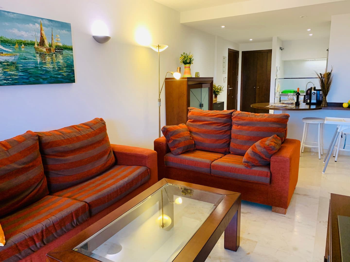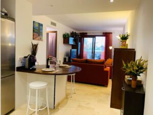 Falleg íbúð á góðum stað aðeins 500m frá ströndinni í Punta Prima. Íbúðin er staðsett í La Recoleta íbúðakjarnanum á 2.hæð í lyftuhúsi. Íbúðin samanstendur af 2 svefnherbergjum, 1 baðherbergi, opnu eldhúsi með barborði og stofu. Úr stofunni er útgengt á stórar svalir með virkilega fallegu útsýni. Loftkæling er í íbúðinni sem og WiFi.