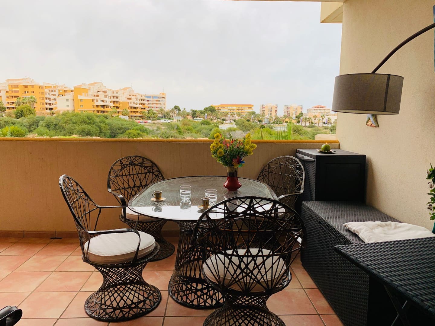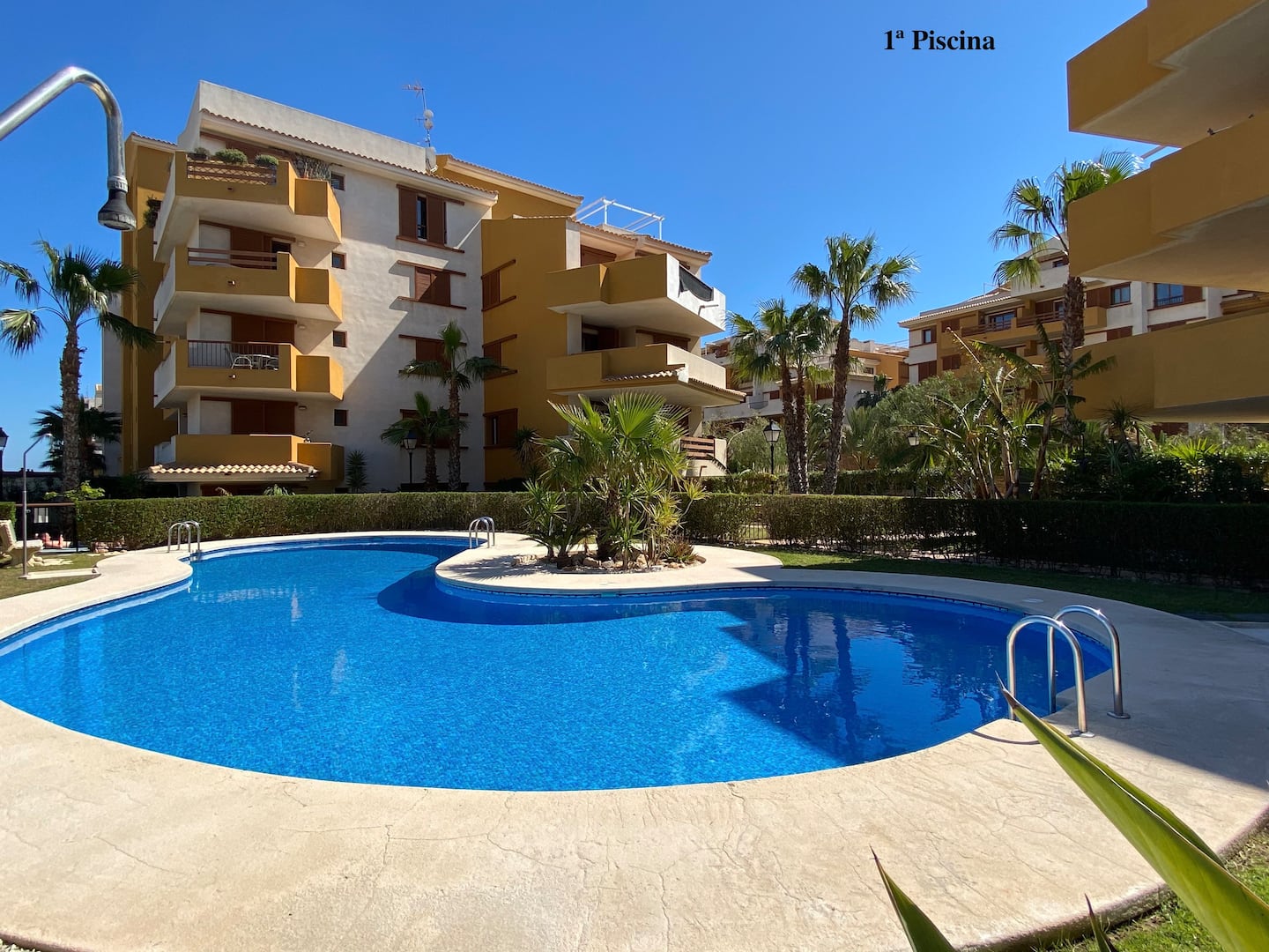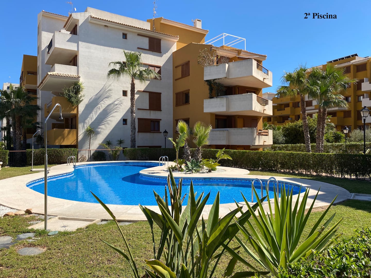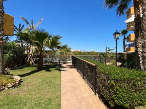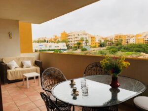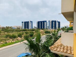 La Recoleta íbúðakjarninn státar af fallegum garði þar sem íbúar hafa aðgang að 2 sameiginlegum sundlaugum. Stutt er í alla þjónustu eins og verslanir, veitingastaði og bari en það er allt í göngufæri. Það eru 2 strendur í 2 mínútna göngufæri og það tekur aðeins 5 mínútur að keyra að La Zenia Boulevard verslunarmiðstöðinni vinsælu þar sem þú finnur allt til alls.Vetrarleiga: 650 evrur á mánuði + reikningar
