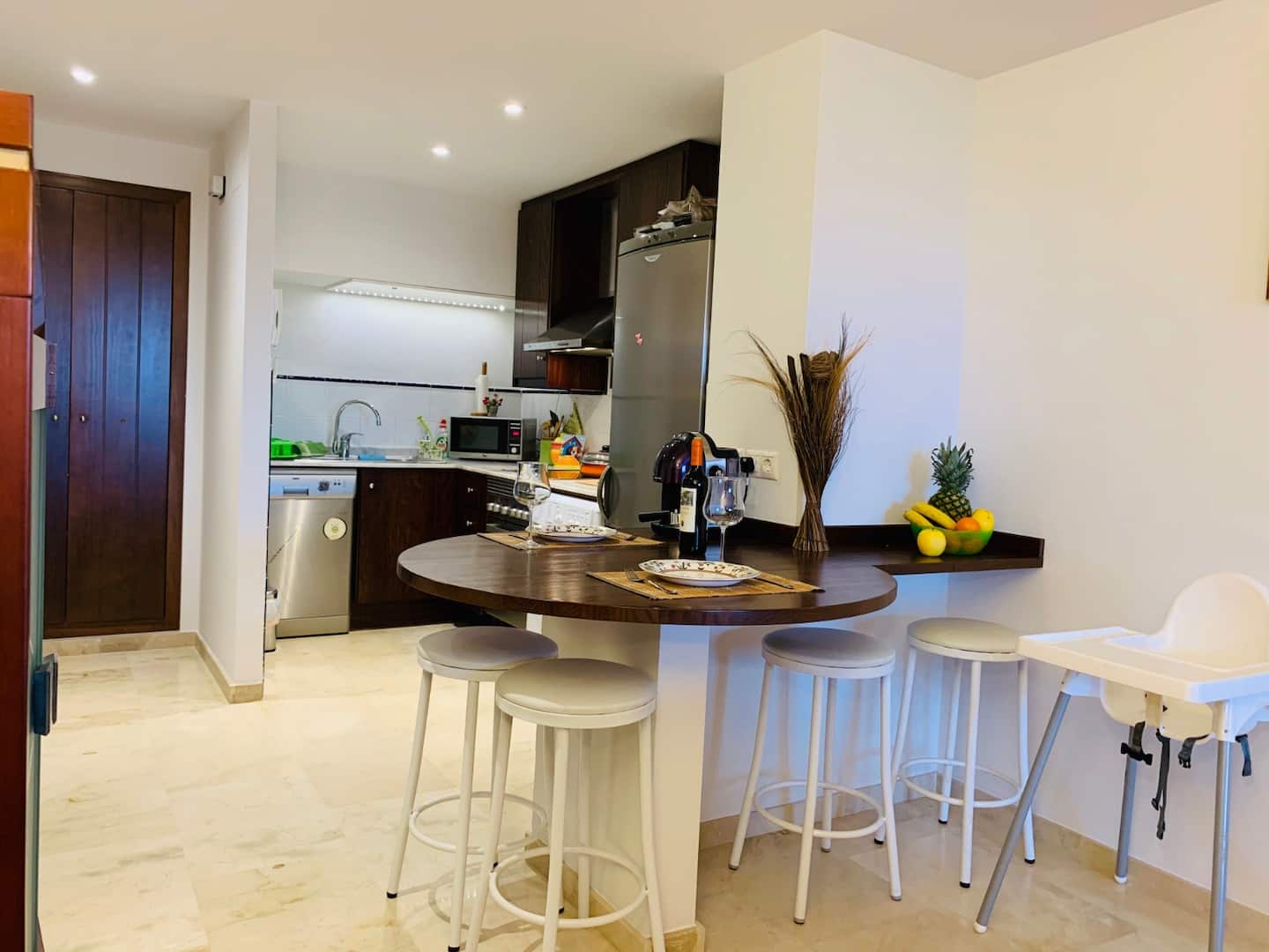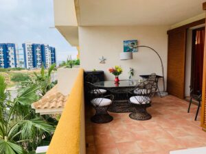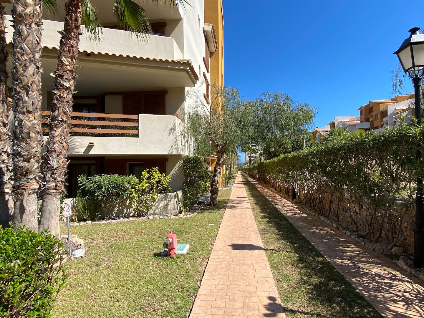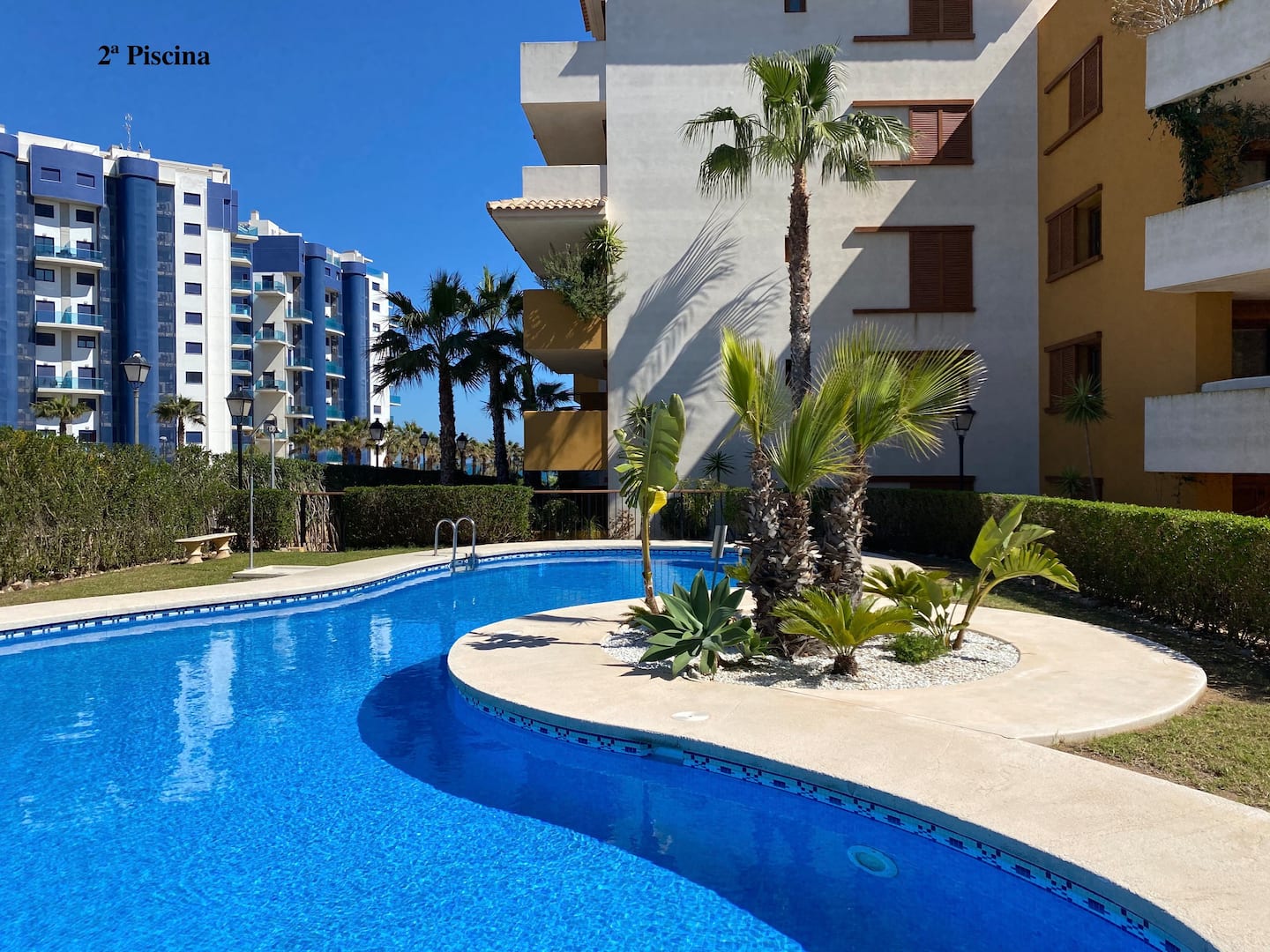 La Recoleta íbúðakjarninn státar af fallegum garði þar sem íbúar hafa aðgang að 2 sameiginlegum sundlaugum. Stutt er í alla þjónustu eins og verslanir, veitingastaði og bari en það er allt í göngufæri. Það eru 2 strendur í 2 mínútna göngufæri og það tekur aðeins 5 mínútur að keyra að La Zenia Boulevard verslunarmiðstöðinni vinsælu þar sem þú finnur allt til alls.Vetrarleiga: 650 evrur á mánuði + reikningar