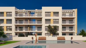 Björt og falleg íbúð til sölu í La Zenia. Íbúðin sem er á jarðhæð samanstendur af 2 svefnherbergjum, 2 baðherbergjum, eldhúsi og stofu/borðstofu. Úr stofu er útgengt á 50m2 verönd. Íbúðin er staðsett í nýjum lokuðum kjarna þar sem íbúar hafa aðgang að sundlaug, nuddpotti og lítilli úti rækt. Bílastæði fylgir íbúðinni.