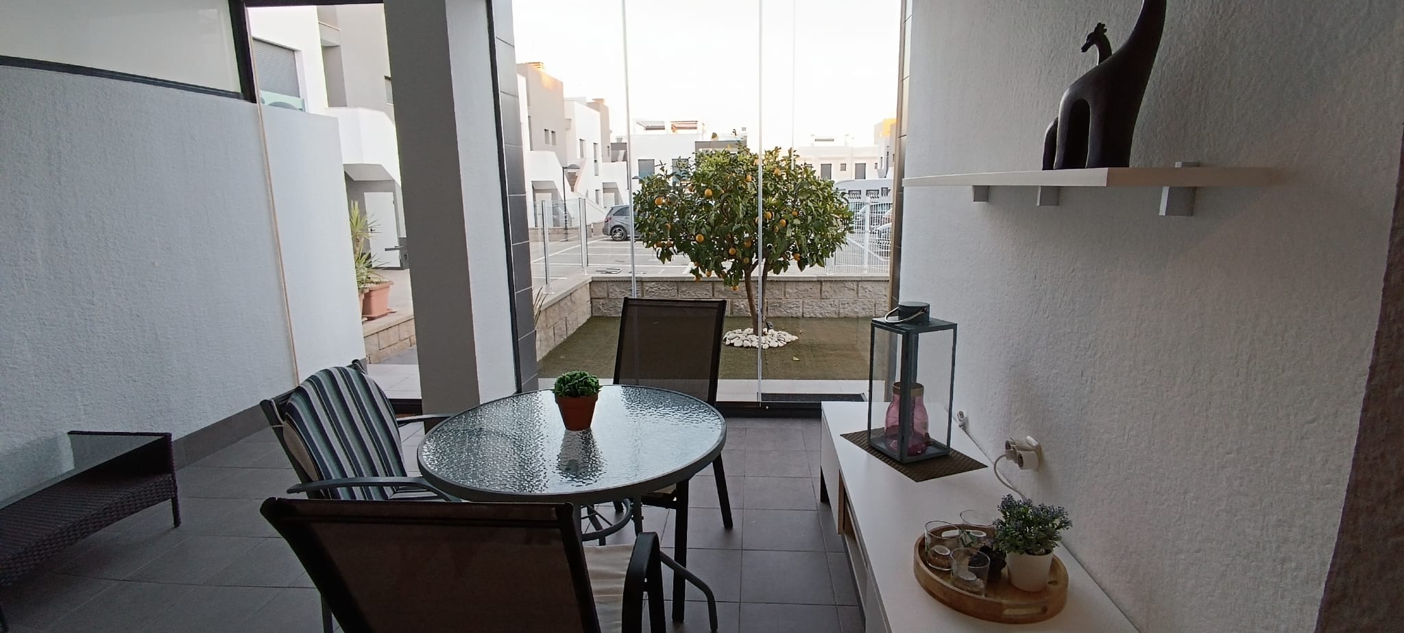 Hugguleg íbúð til orlofs- eða vetrarleigu á besta stað í La Zenia. Íbúðin sem er á jarðhæð, samanstendur af 2 svefnherbergjum, 2 baðherbergjum, eldhúsi og stofu/borðstofu. Úr stofunni er útgengt á gott útisvæði. Íbúðin er staðsett í góðum, lokuðum kjarna þar sem íbúar hafa aðgang að sameiginegum sundlaugum og leiksvæði fyrir börnin. Loftkæling er í íbúðinni.