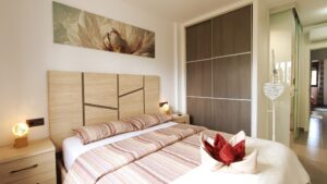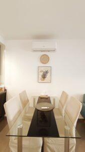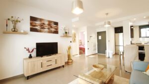 Hugguleg íbúð til orlofsleigu á besta stað í La Zenia. Íbúðin sem er á jarðhæð, er 75m2 og samanstendur af 2 svefnherbergjum, 2 baðherbergjum, eldhúsi og stofu/borðstofu. Úr stofunni er útgengt á góða verönd sem snýr út í sameiginlegan sundlaugagarð. Loftkæling er í íbúðinni.