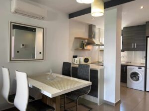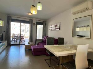 Glæsileg íbúð á jarðhæð til vetrar- eða orlofsleigu. Íbúðin sem er á jarðhæð, samanstendur af 2 svefnherbergjum, 2 baðherbergjum (annað með sturtu en hitt með baðkari), eldhúsi og stofu/borðstofu. Úr stofunni er útgengt á góða verönd sem snýr út í sameiginlegan sundlaugagarð en þar hafa íbúar aðgang að stórri sundlaug og sólbaðsaðstöðu.