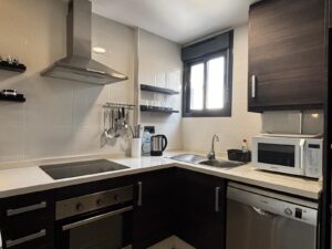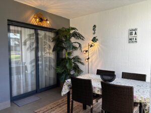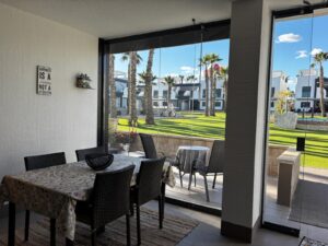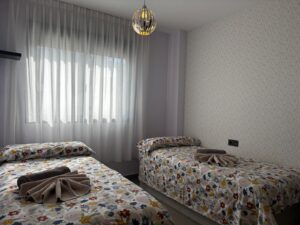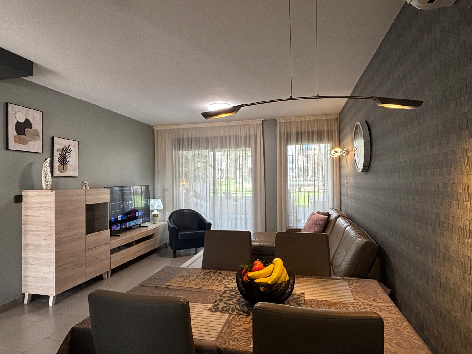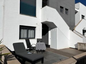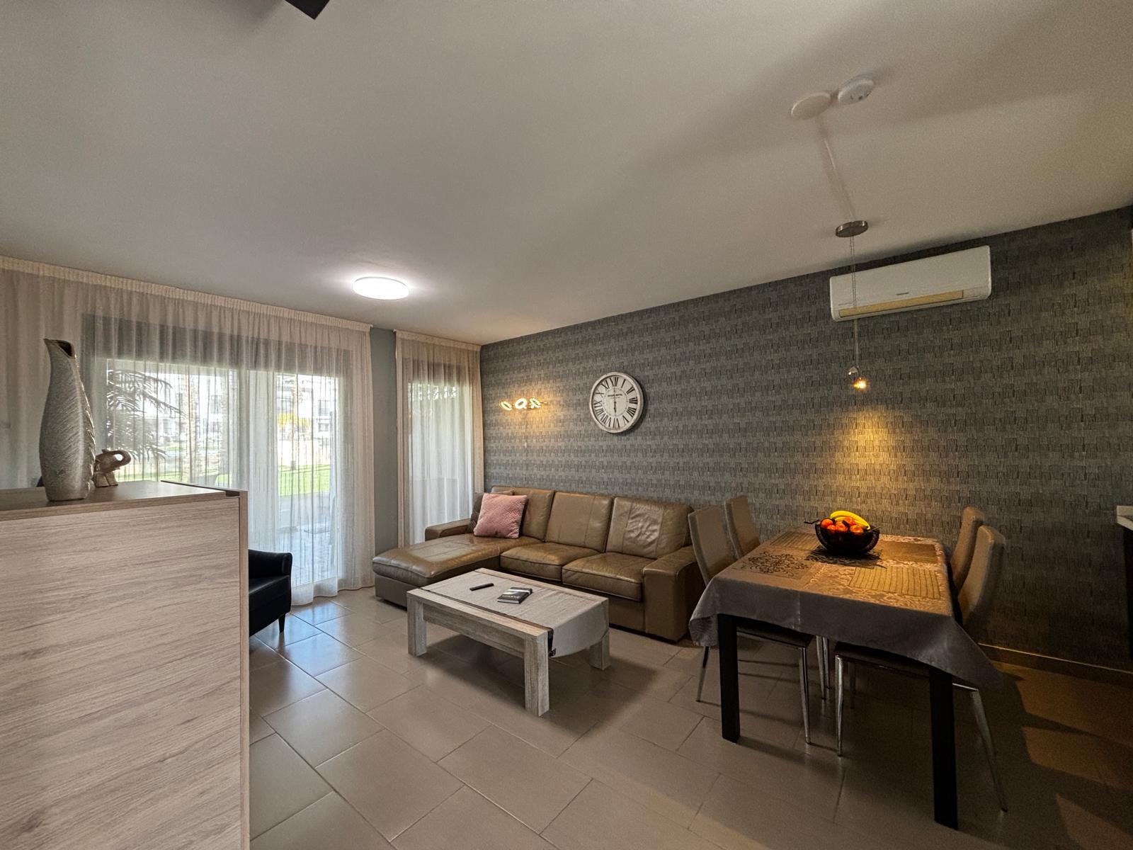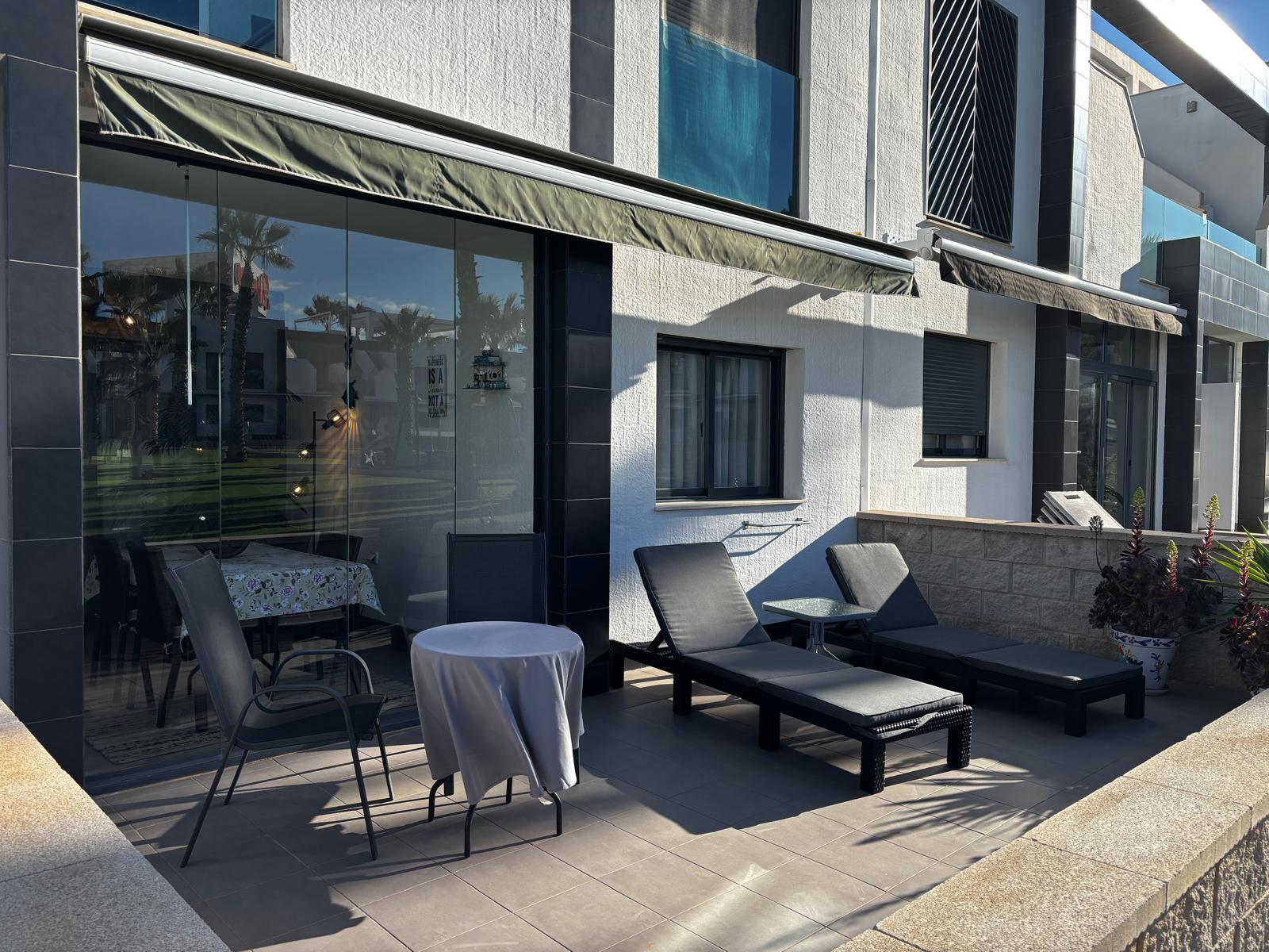 Falleg íbúð til orlofsleigu á besta stað í La Zenia. Íbúðin sem er á jarðhæð, samanstendur af 2 rúmgóðum svefnherbergjum, 1 baðherbergi, eldhúsi og stofu/borðstofu. Í öðru herberginu er hjónarúm, en í hinu eru 2 einstaklingsrúm. Úr stofunni er útgengt á verönd sem snýr í vestur og út í sundlaugagarðinn en þar hefur þú sólina seinni partinn. Einnig er útgengt á aðra verönd sem snýr í austur, þar sem þú hefur morgunsólina. Íbúðin er staðsett í lítilli, rólegri götu í góðum lokuðum kjarna þar sem íbúar hafa aðgang að góðum garði með sameiginlegri sundlaug. Loftkæling er í íbúðinni.