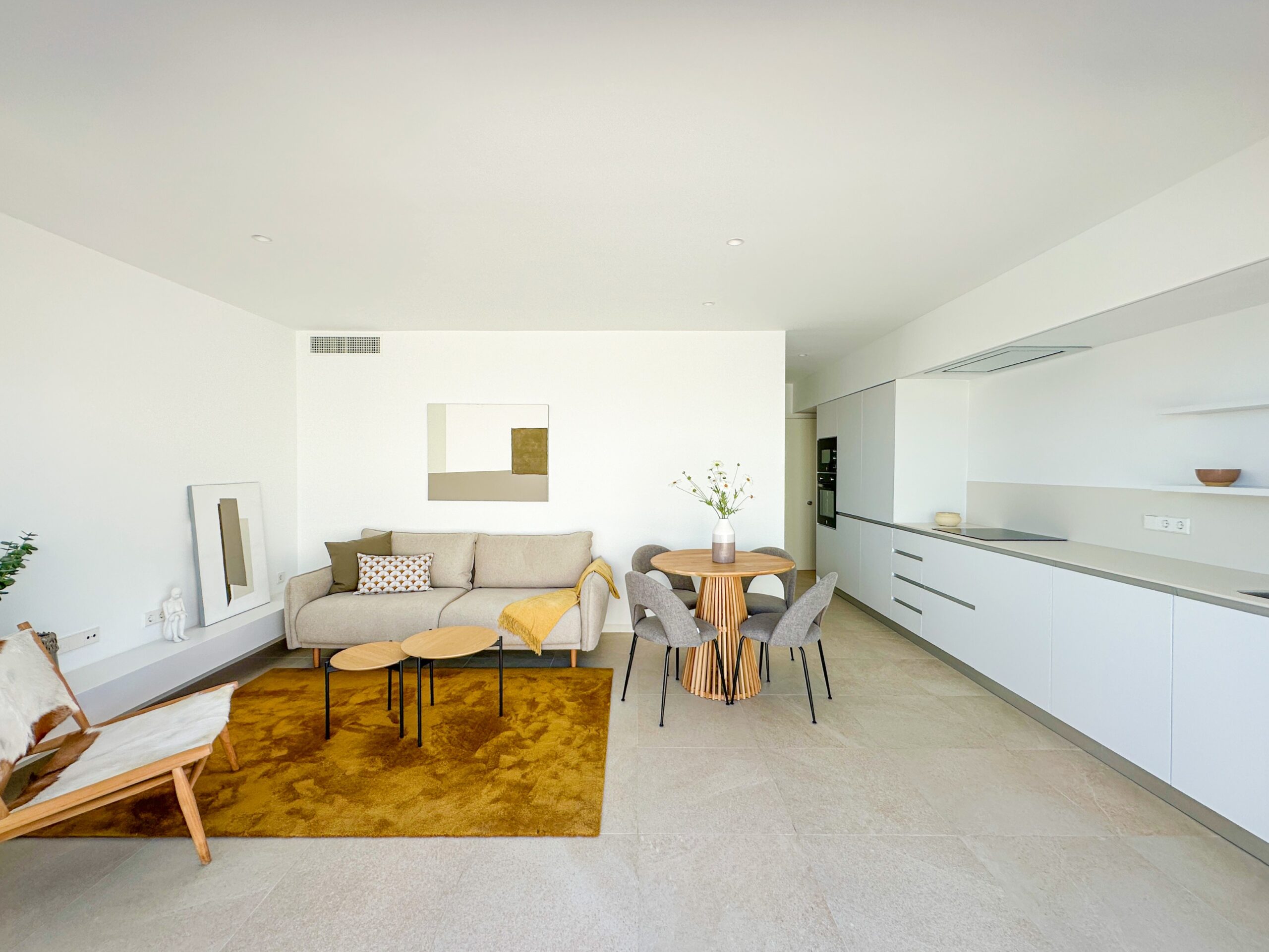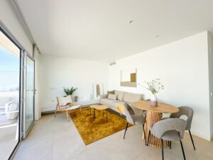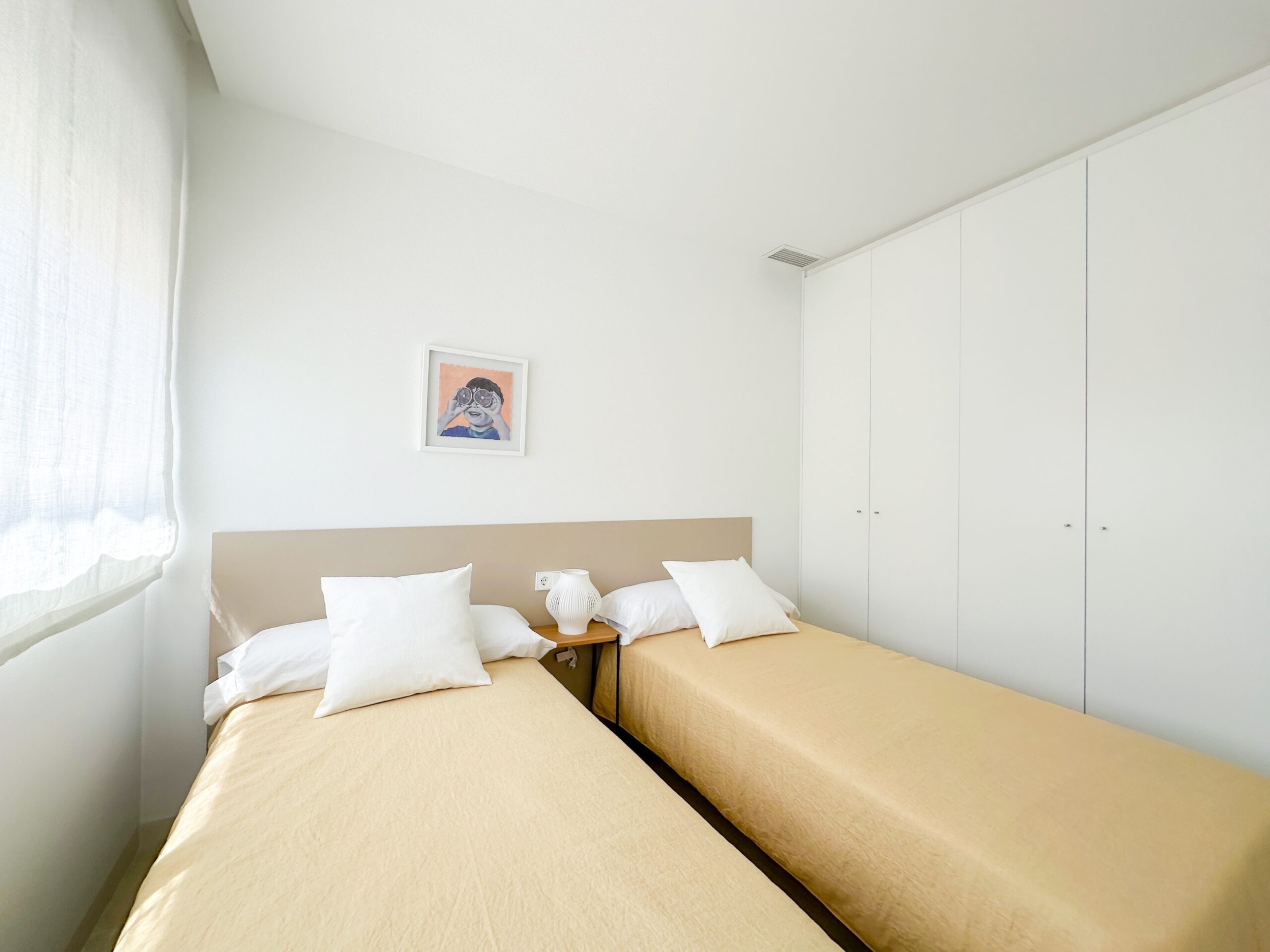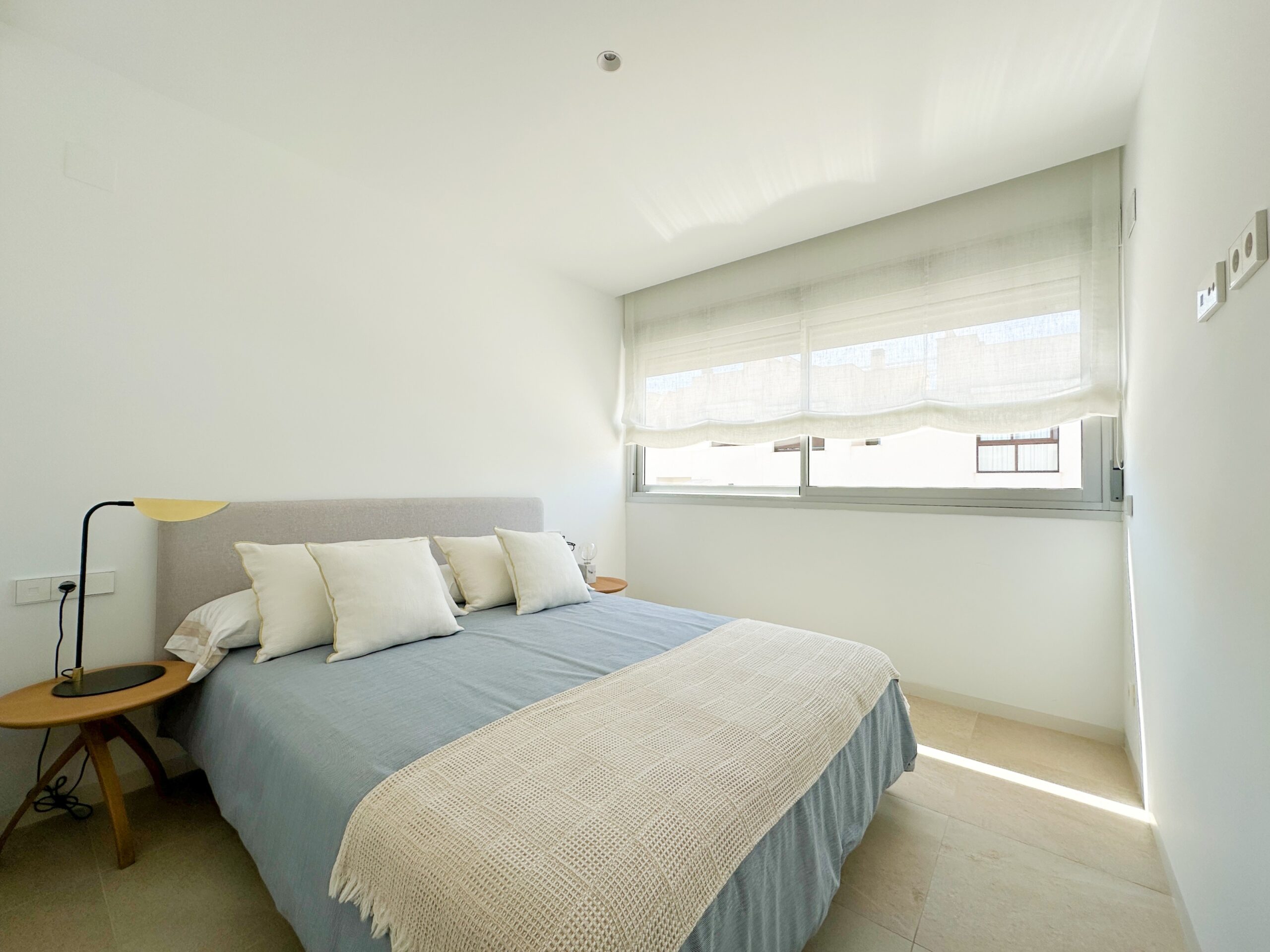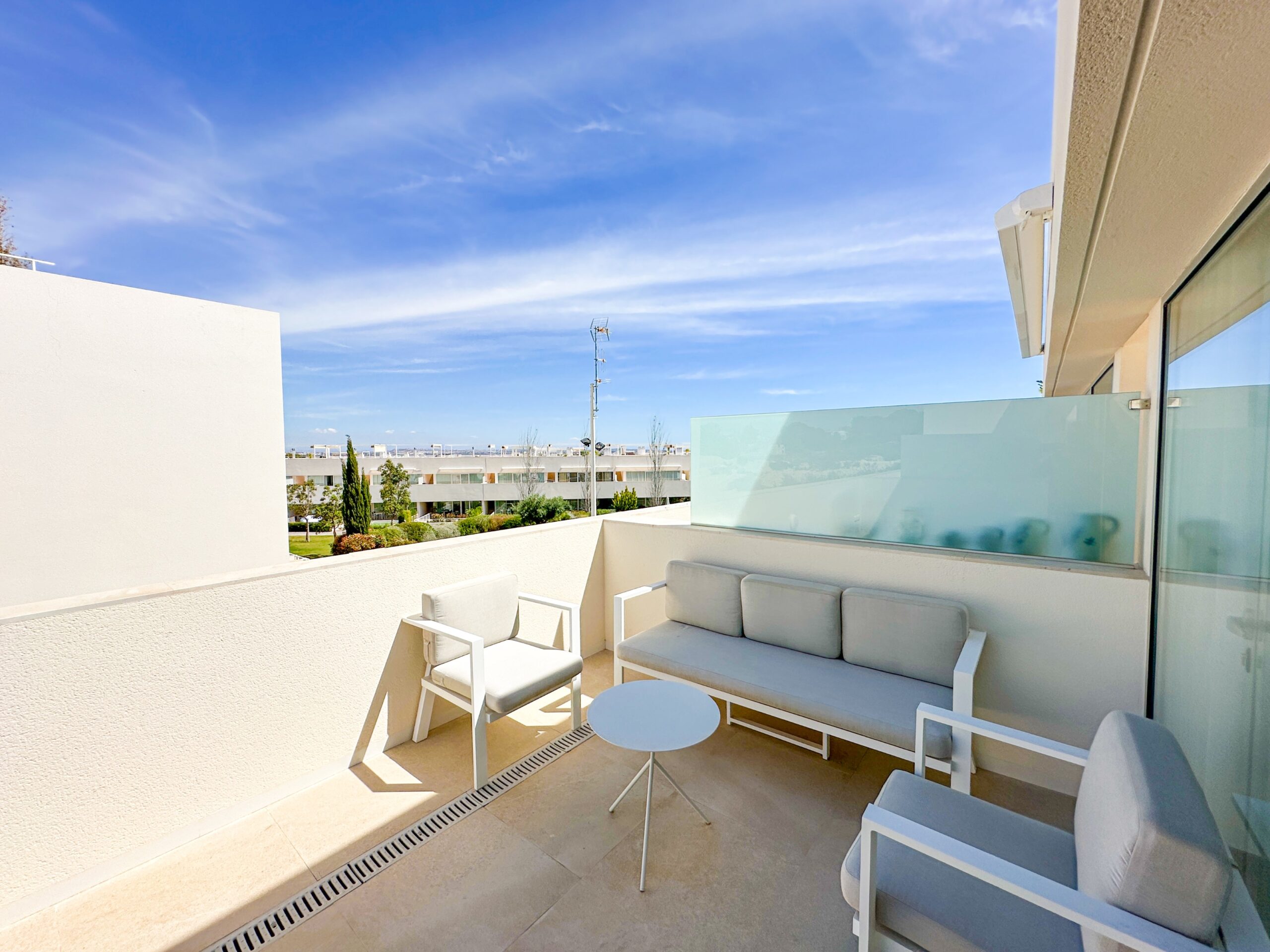 Hugguleg íbúð til sölu í Los Balcones. Íbúðin sem er 84m2 samanstendur af 2 svefnherbergjum, 2 baðherbergjum, eldhúsi og stofu/borðstofu. Inn af öðru svefnherberginu er baðherbergi og fataherbergi. Úr stofunni er útgengt á rúmgóðar svalir en þaðan er stigi upp á 63m2 sólþak þar sem nóg pláss er til að njóta sólarinnar. Íbúðinni fylgir geymsla og stæði í bílageymslu. Íbúðin er staðsett í góðum lokuðum kjarna þar sem íbúar hafa aðgang að sameiginlegri sundlaug.