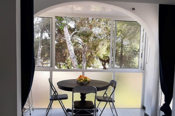 Lítil og hugguleg íbúð í Los Balcones til vetrarleigu eða orlofsleigu. Íbúðin samanstendur af 1 svefnherbergi, 1 baðherbergi, eldhúsi og stofu. Úr stofunni er útgengt á yfirbyggðar svalir sem eru eiginlega framlenging á stofunni. Íbúðin er staðsett í góðum kjarna þar sem íbúar hafa aðgang að sameiginlegri sundlaug.