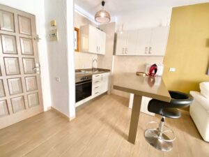 Falleg íbúð miðsvæðis Los Cristianos nánar tiltekið í Los Angeles íbúðakjarnanum. Íbúðin sem er 48m2 samanstendur af 1 svefnherbergi, 1 baðherbergi, eldhúsi og stofu. Úr stofunni er útgengt á góðar 8m2 svalir. Lyfta er í húsinu og hafa íbúar aðgang að sameiginlegum sundlaugagarði og bílastæðum. Íbúðin er fullbúin húsgögnum.