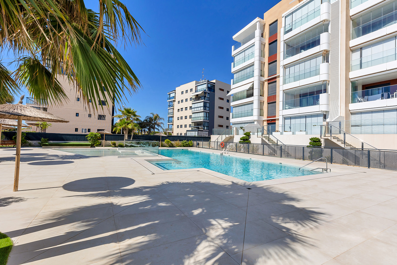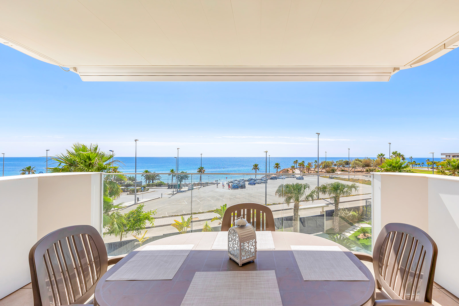 Hugguleg íbúð til sölu við ströndina í Mil Palmears. Íbúðin samanstendur af 2 svefnherbergjum, 2 baðherbergjum, eldhúsi, þvottahúsi og stofu/borðstofu. Úr stofunni er útgengt á góðar svalir sem snúa út að ströndinni. Íbúðin er í lyftuhúsi í virkilega góðum, lokuðum kjarna þar sem íbúar hafa aðgang að sameiginlegri sundlaug og barnalaug. Íbúðinni fylgir geymsla og stæði í bílageymslu.