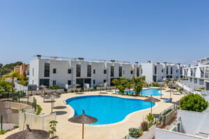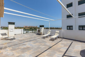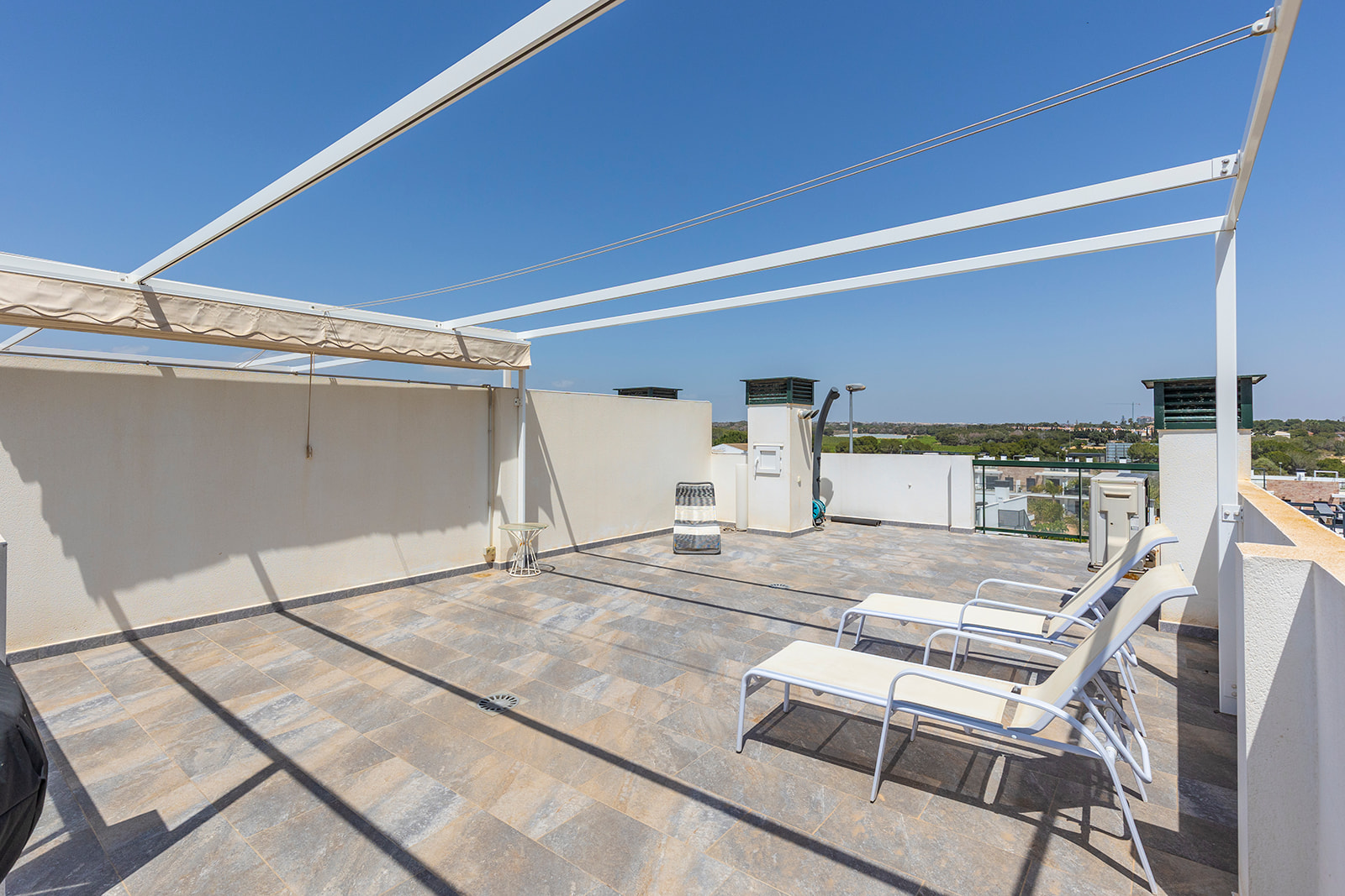 Virkilega hugguleg þakíbúð til sölu í Mil Palmeras. Íbúðin sem er 70m2, samanstendur af 2 svefnherbergjum, 2 baðherbergjum, eldhúsi og stofu/borðstofu. Inn af eldhúsinu er þvottaaðstaða. Útgengt er á svalir úr svefnherbergi og stofu en af svölunum liggur svo stigi upp á rúmgott sólþak þar sem tilvalið er að njóta sólarinnar. Íbúðin snýr í suður. Íbúðin er staðsett í góðum, lokuðum kjarna þar sem íbúar hafa aðgang að sameiginlegri sundlaug.