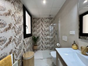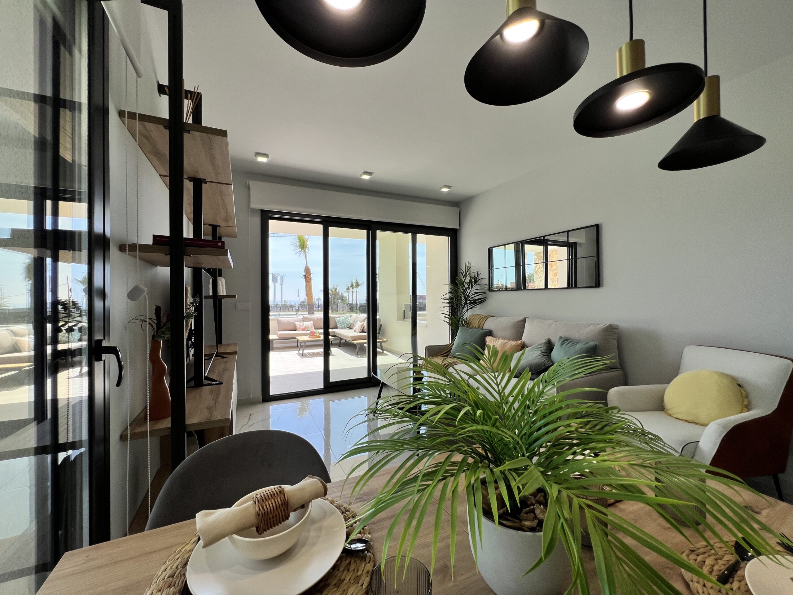 Falleg íbúð til sölu í Playa Flamenca. Íbúðin sem er á jarðhæð er 80m2 og samanstendur af 2 svefnherbergjum, 2 baðherbergjum, eldhúsi og stofu/borðstofu. Úr stofunni er útgengt stóra 116m2 verönd þar sem nóg pláss er til að borða úti eða bara liggja og baða sig í sólinni! Íbúðin er staðsett í góðum lokuðum kjarna þar sem íbúar hafa aðgang að góðum garði með sameiginlegri sundlaug og bílastæðum.