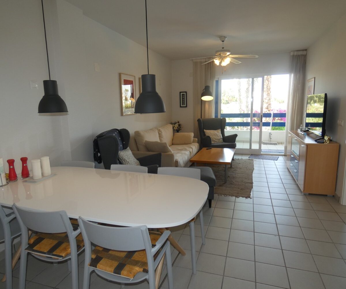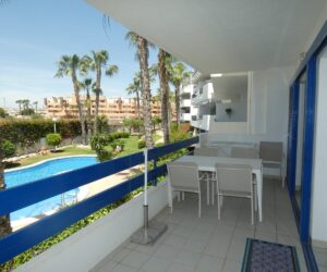 Góð íbúð til vetrarleigu í Playa Flamenca. Íbúðin samanstendur af 2 svefnherbergjum, 2 baðherbergjum, eldhúsi og stofu/borðstofu. Úr stofunni er útgengt á rúmgóðar svalir þar sem tilvalið er að njóta sólarinnar. Íbúðin er staðsett í góðum kjarna þar sem íbúar hafa aðgang að lokuðum garði með sameiginlegum sundlaugum. Einnig er bílastæði innan kjarnans.