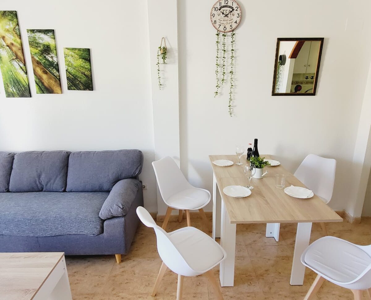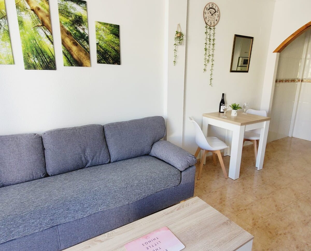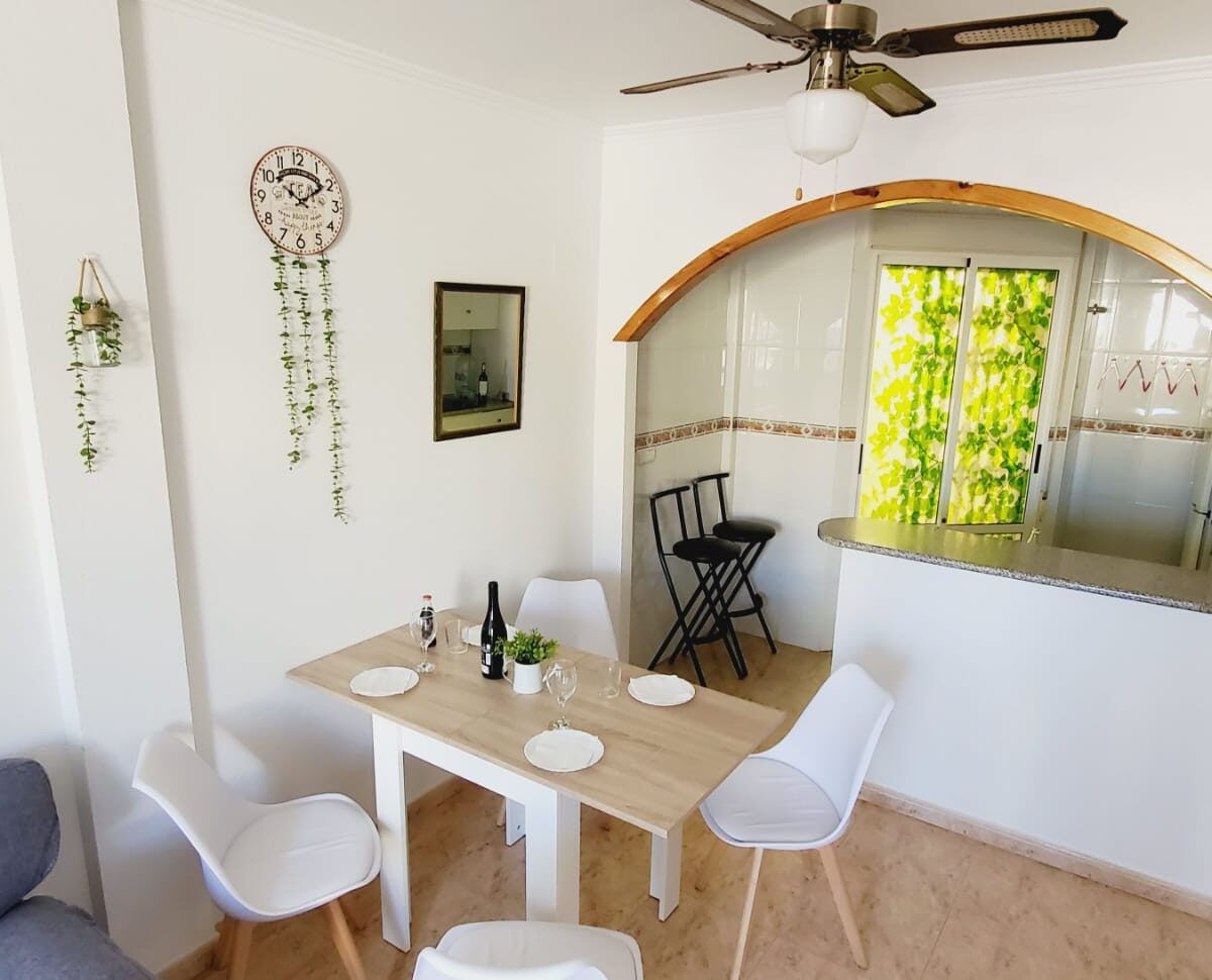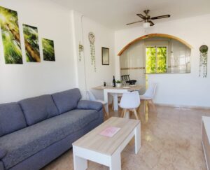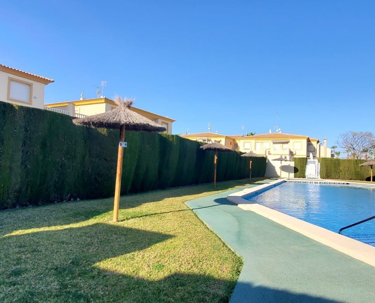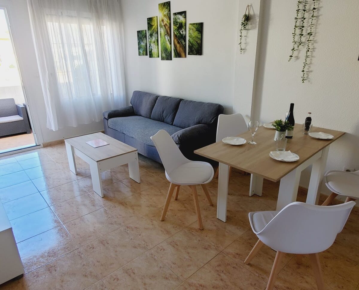 Íbúð til vetrarleigu í Playa Flamenca. Íbúðin sem er á jarðhæð samanstendur af 2 svefnherbergjum, 1 baðherbergi, eldhúsi og stofu/borðstofu. Inn af eldhúsi er þvottaaðstaða. Við innganginn er verönd með sólhúsgögnum. Íbúðin er í kja-rna þar sem íbúar hafa aðgang að sameiginlegri sundlaug.