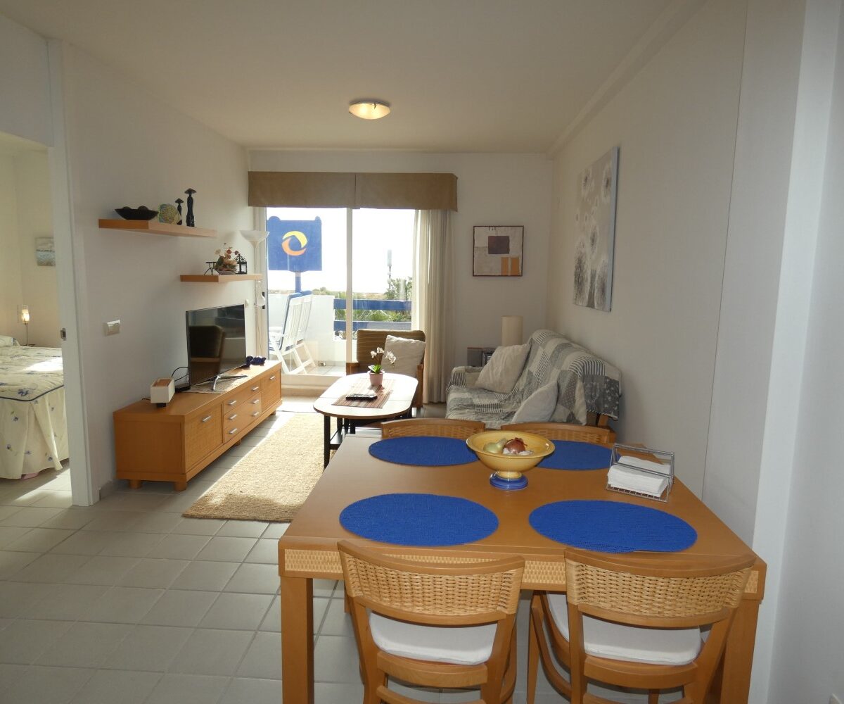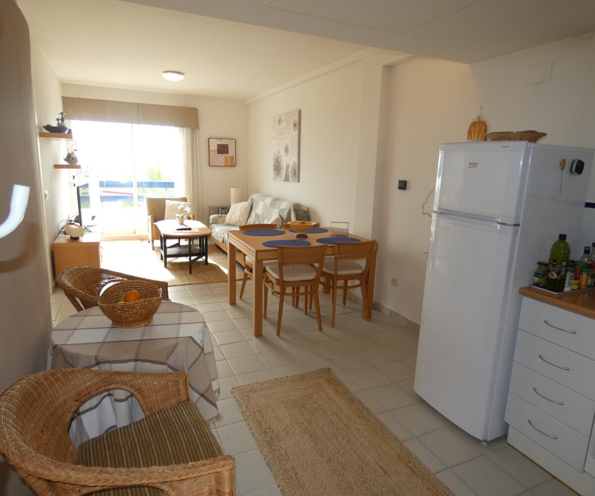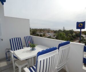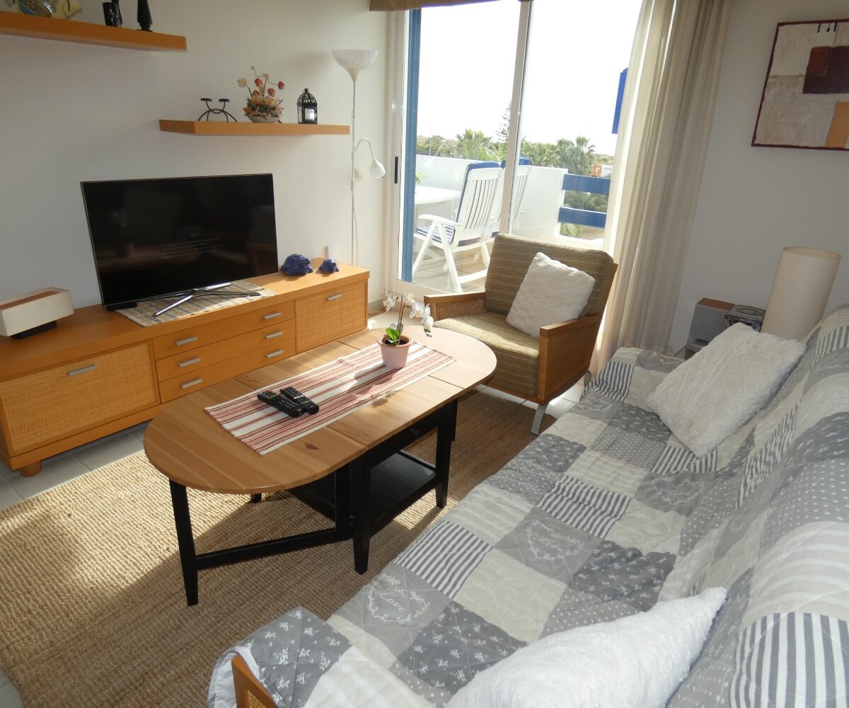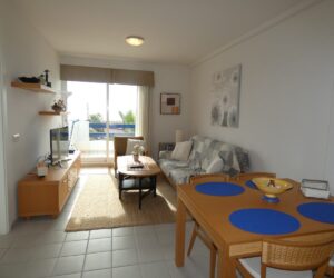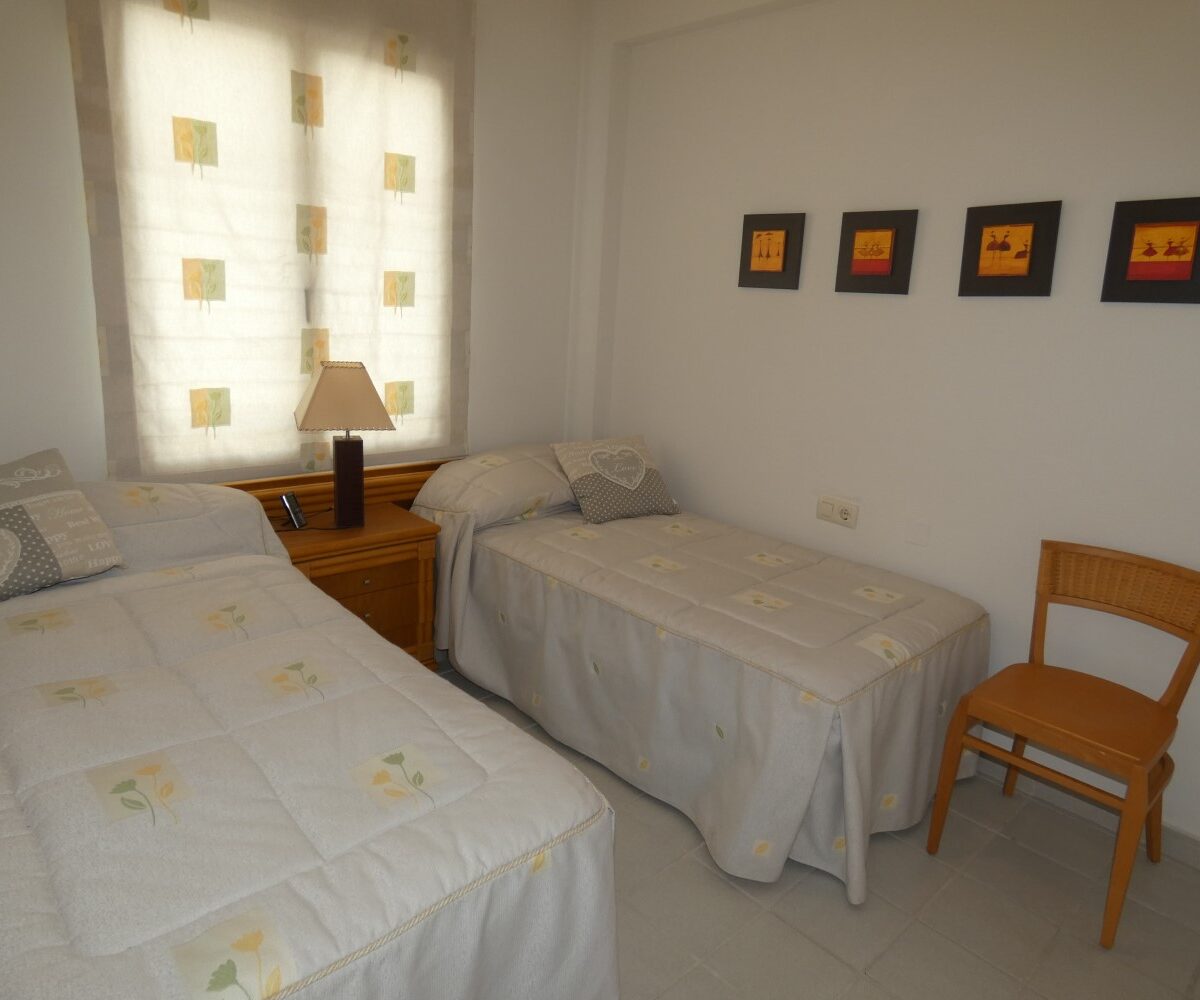 Íbúð til vetrarleigu í Playa Flamenca. Íbúðin sem er í lyftuhúsi samanstendur af 2 svefnherbergjum, 2 baðherbergjum, eldhúsi og stofu/borðstofu. Úr stofunni er útgengt á svalir sem snúa í austur. Húsið er í góðum kjarna þar sem íbúar hafa aðgang að lokuðum garði með sameiginlegri sundlaug.