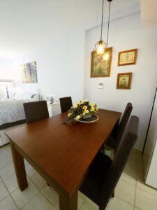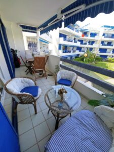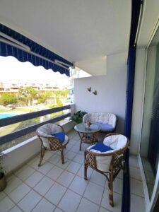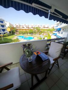 Hugguleg íbúð til orlofs- eða vetrarleigu í Playa Flamenca. Íbúðin sem er á 1.hæð í lyftuhúsi samanstendur af 2 svefnherbergjum, 2 baðherbergjum, eldhúsi og stofu/borðstofu. Úr stofu og svefnherbergi er útgengt á góðar svalir með sólhúsgögnum. Svalirnar snúa út í sameiginlegan sundlaugagarð. Bílastæði fygir íbúðinni.