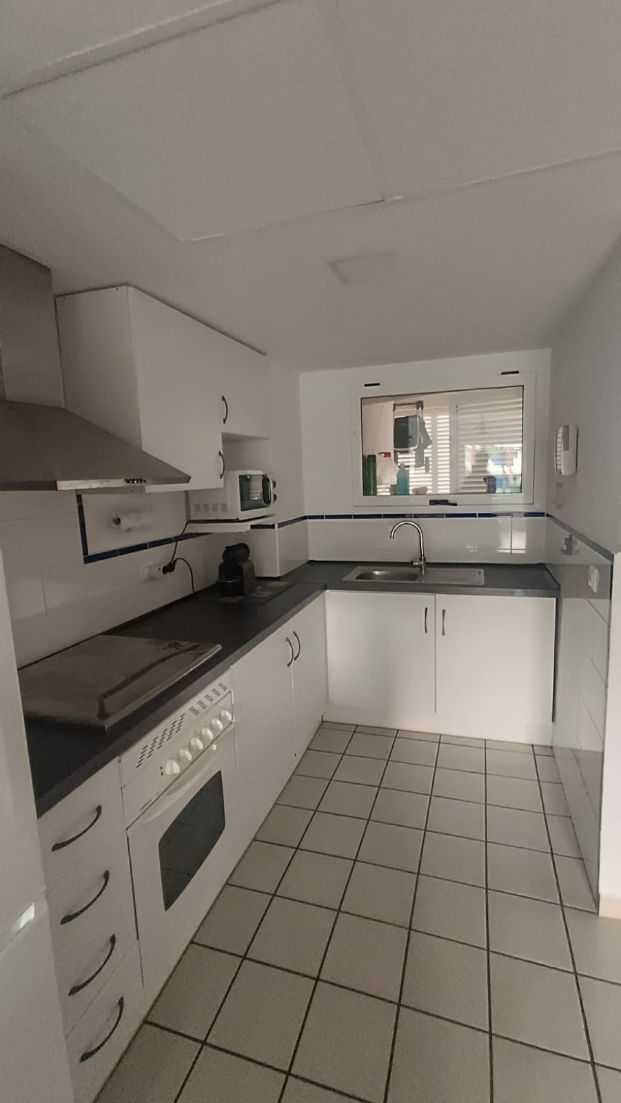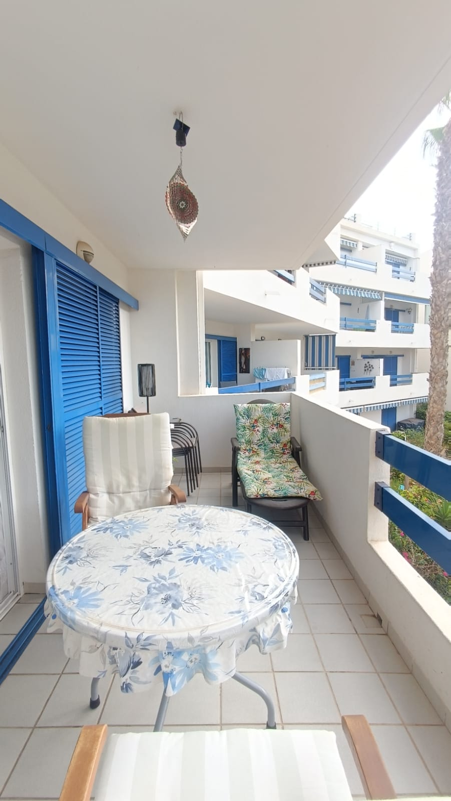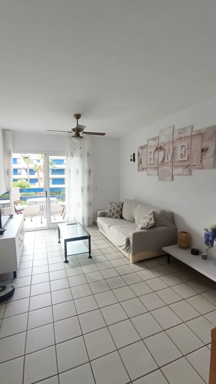 Íbúð til orlofs- eða vetrarleigu í Playa Flamenca. Íbúðin sem er staðsett í lyftuhúsi, samanstendur af 2 svefnherbergjum, 2 baðherbergjum, eldhúsi og stofu/borðstofu. Úr stofunni er útgengt á svalir sem snúa út í sameiginlegan sundlaugagarð. Íbúðinni fylgir bílastæði. Viftur eru í loftum í stofu og svefnherbergjum.