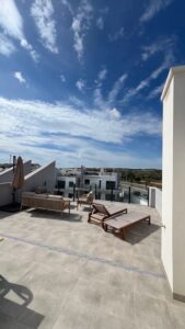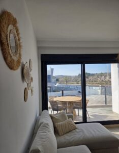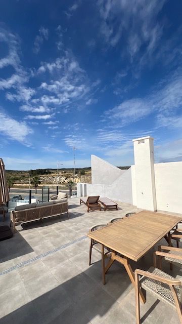 Virkilega hugguleg íbúð til orlofs- eða vetrarleigu í San Miguel de Salinas. Íbúðin sem er á efri hæð í tvíbýli, samanstendur af 2 svefnherbergjum, 2 baðherbergjum, eldhúsi og stofu/borðstofu. Úr stofunni er útgengt á svalir og þaðan upp á rúmgott sólþak, þar sem tilvalið er að baða sig í sólinni. Íbúðin er fullbúin húsgögnum og borðbúnaði en hún er staðsett í góðum, lokuðum kjarna þar sem íbúar hafa aðgang að garði með sameiginlegum sundlaugum og leiksvæði fyrir börnin.