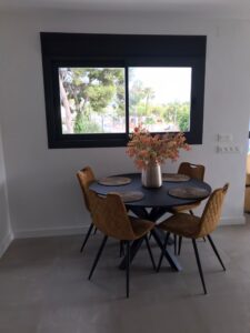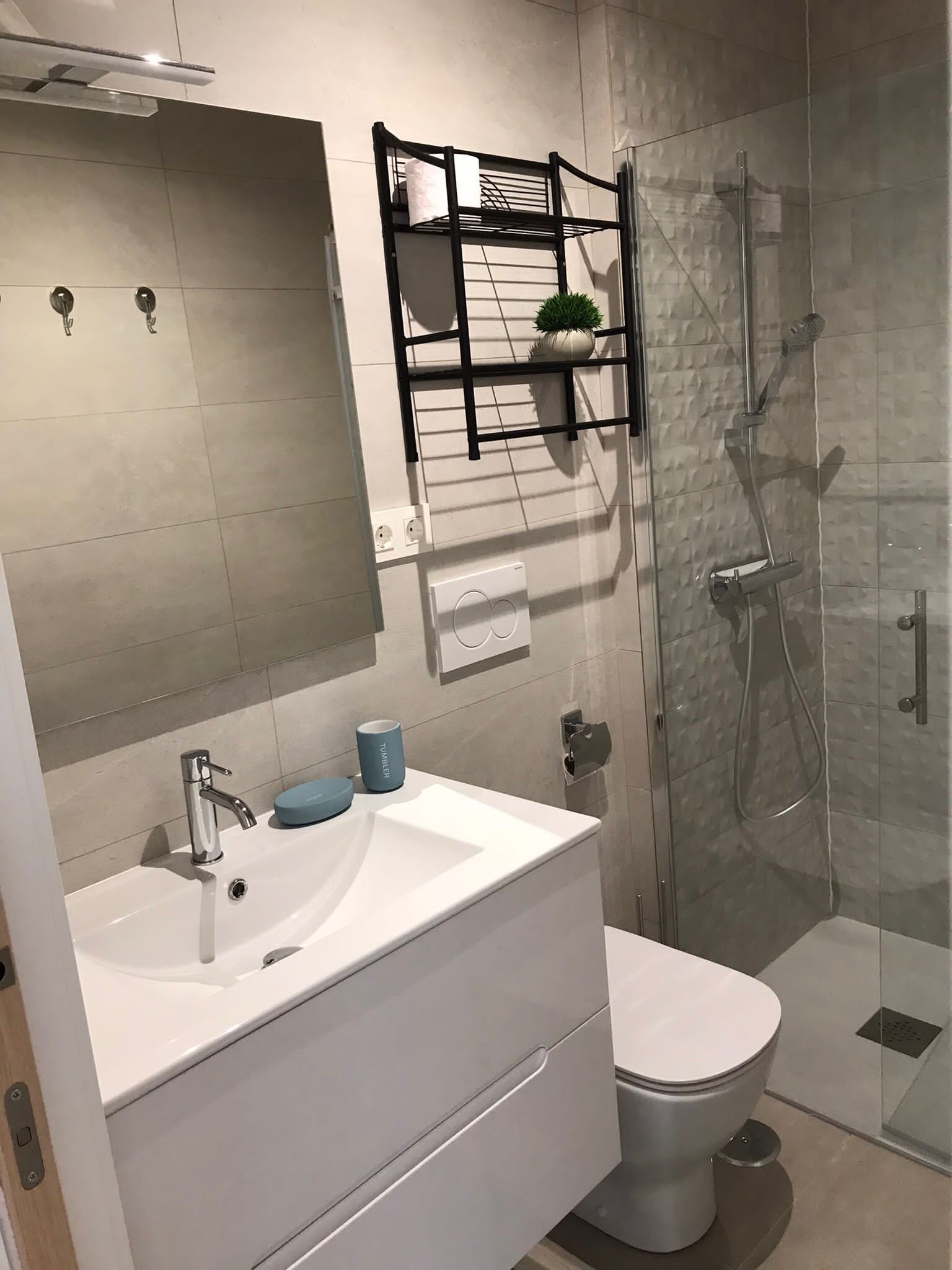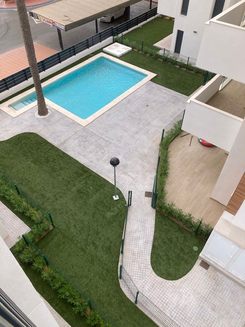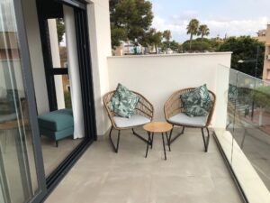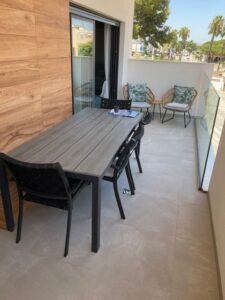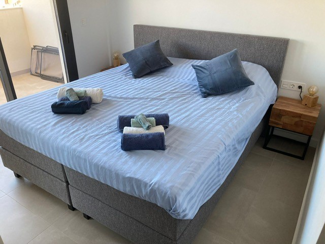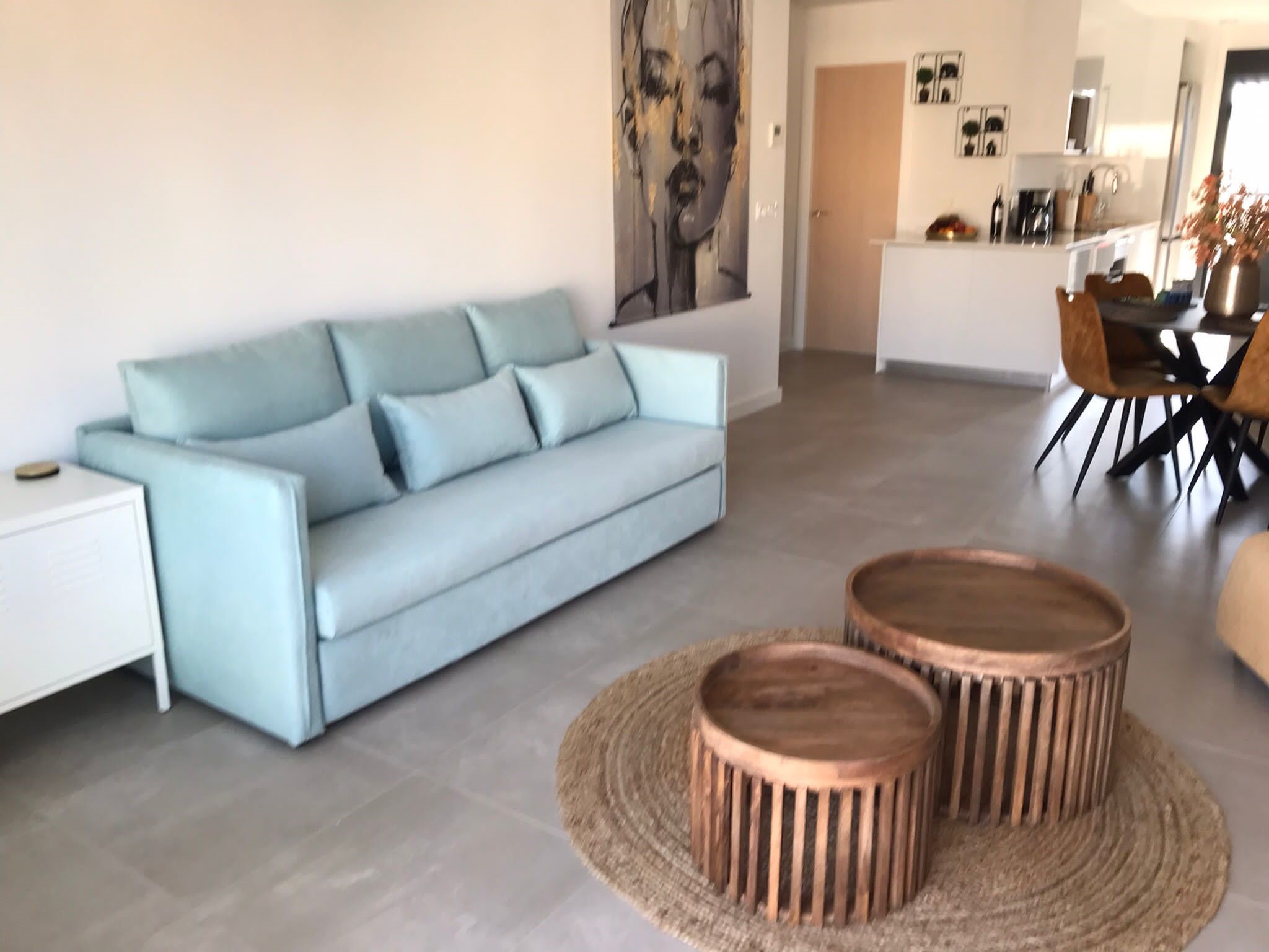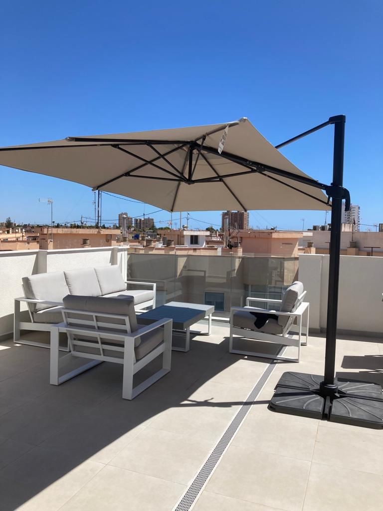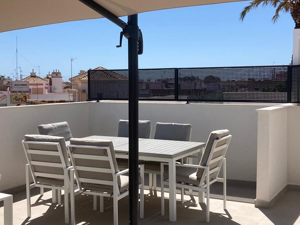 Falleg íbúð til orlofs- eða vetrarleigu í Santiago de la Ribera. Íbúðin samanstendur af 2 svefnherbergjum, 2 baðherbergjum, eldhúsi og stofu/borðstofu. Úr stofunni er útgengt á fínar svalir en einnig fylgir íbúðinni rúmgott sólþak. Íbúðin er í lyftuhúsi í lokuðum kjarna þar sem íbúar hafa aðgang að sameiginlegri sundlaug. Loftkæling er í íbúðinni.
