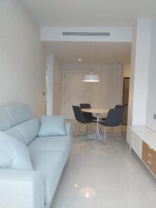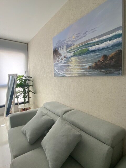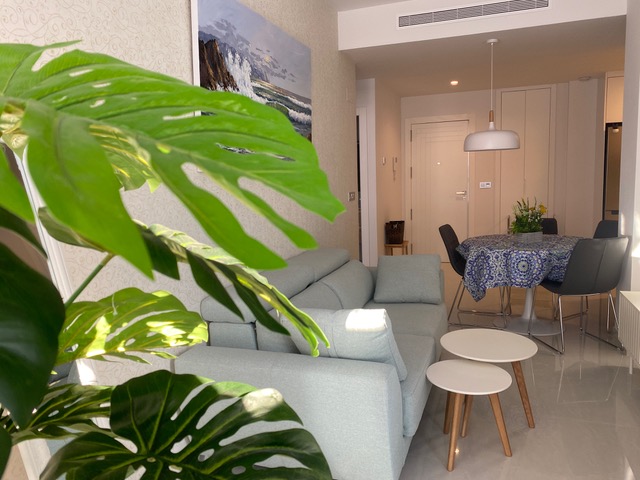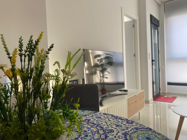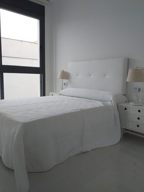Glæný íbúð til skammtímaleigu í miðbæ Torrevieja. Íbúðin samanstendur af 2 svefnherbergjum, 2 baðherbergjum, fullbúnu eldhúsi og stofu/borðstofu. Gott sólþak fylgir íbúðinni en þar eru sólbekkir. Stutt er í alla þjónustu eins og verslanir, veitingastaði og bari en íbúðin er staðsett í mjög góðu hverfi. Íbúar hafa aðgang að sameiginlegri sundlaug.