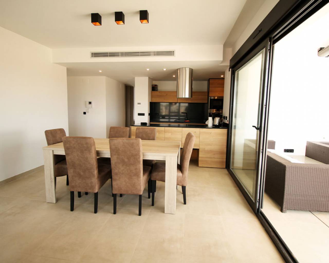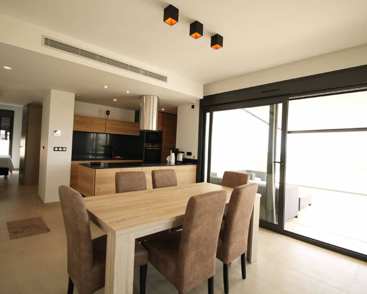 Falleg og rúmgóð íbúð á góðum stað í Villamartin Golf. Íbúðin sem er 120m2 samanstendur af 3 svefnherbergjum, 2 baðherbergjum, eldhúsi og stofu/borðstofu. Úr stofunni er útgengt á góða verönd en einnig er önnur verönd út af svefnherbergi. Íbúðin er staðsett í lúxus íbúðakjarna þar sem íbúar hafa aðgang að sameiginlegum garði með sundlaug en einnig er í kjallaranum spa þar sem er upphituð innilaug, sauna og líkamsrækt. Undir kjarnanum er bílageymsla þar sem einkastæði fylgir íbúðinni. Íbúðin er útbúin fyrir 6 manneskjur og er bæði internet og loftkæling.