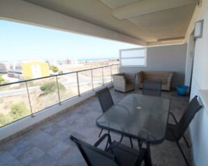 Virkilega rúmgóð íbúð í Villamartin til orlofsleigu. Íbúðin sem er 90m2 samanstendur af 2 svefnherbergjum, 2 baðherbergjum, eldhúsi og stofu/borðstofu. Úr stofunni er útgengt á stórar svalir þaðan sem sést til sjávar. Annað baðherbergið er inn af svefnherbergi en í báðum baðherbergjum er gólfhiti. Loftkæling er í íbúðinni og WiFi og sjónvarpið hefur aðgang að fjölmörgum sjónvarpsstöðvum. Íbúðin er í góðum kjarna þar sem aðgangur er að sameiginlegum sundlaugagarði en einnig er innilaug og lítil líkamsrækt í húsinu.
