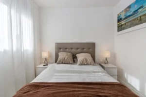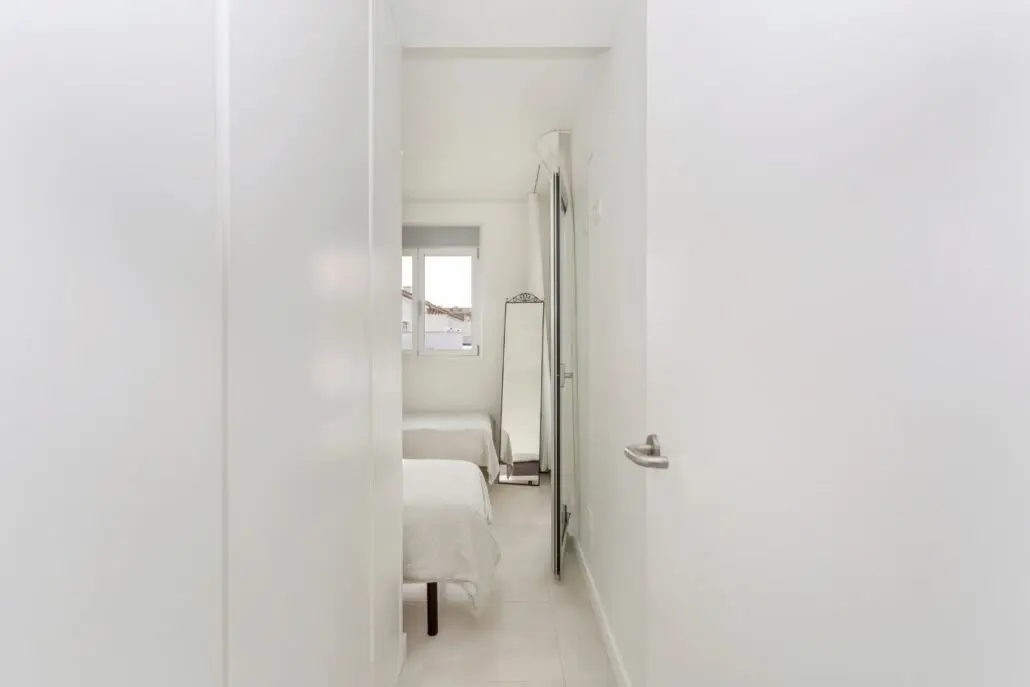 Hugguleg íbúð til sölu í Villamartin. Íbúðin sem er 90m2, samanstendur af 3 rúmgóðum svefnherbergjum, 2 baðherbergjum (annað inn af svefnherbergi), eldhúsi og stofu/borðstofu. Úr stofunni er útgengt á rúmgóða verönd sem snýr í suður en einnig eru svalir. Stigi er upp á einkasólþak þar sem tilvalið er að njóta sólarinnar. Geymsla fylgir íbúðinni sem og stæði í bílageymslu. Íbúðin er staðsett í góðum, lokuðum kjarna þar sem íbúar hafa aðgang að sameiginlegri sundlaug. Leyfi til að leigja íbúðina út til ferðamanna er til staðar.