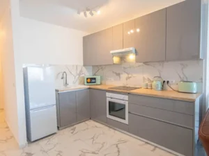 Hugguleg íbúð til sölu í Villamartin. Íbúðin sem er 78m2, samanstendur af 1 svefnherbergi, 1 baðherbergi, eldhúsi og stofu/borðstofu. Hægt er að ganga inn í baðherbergið bæði úr stofunni og einnig úr svefnherbergi. Íbúðin er rúmgóð og björt. Íbúðin er staðsett í lokuðum kjarna þar sem íbúar hafa aðgang að sameiginlegum sundlaugagarði.
