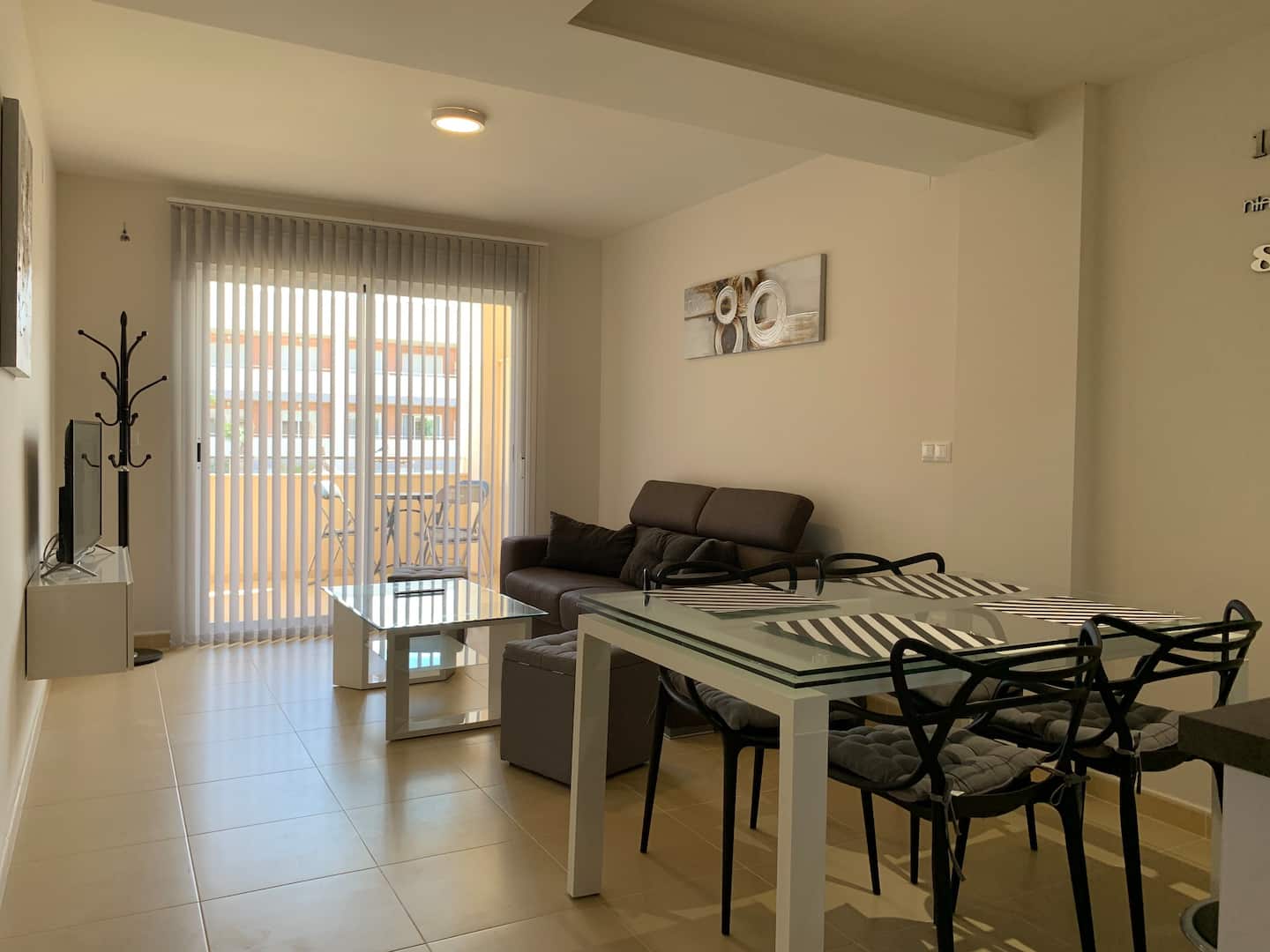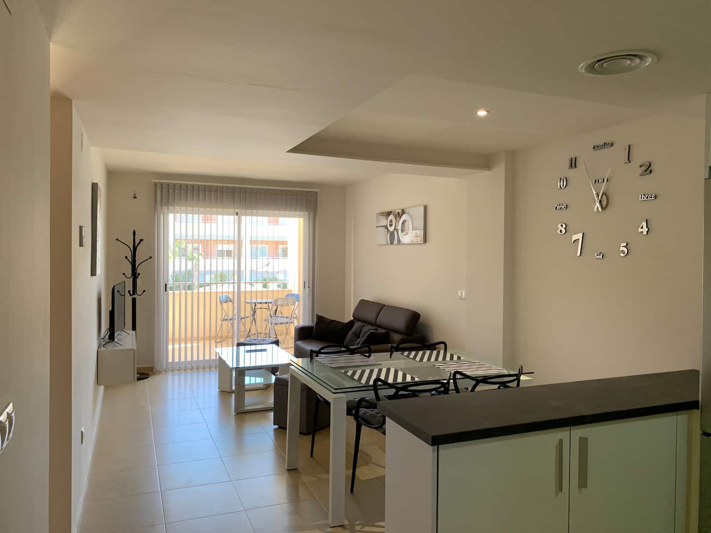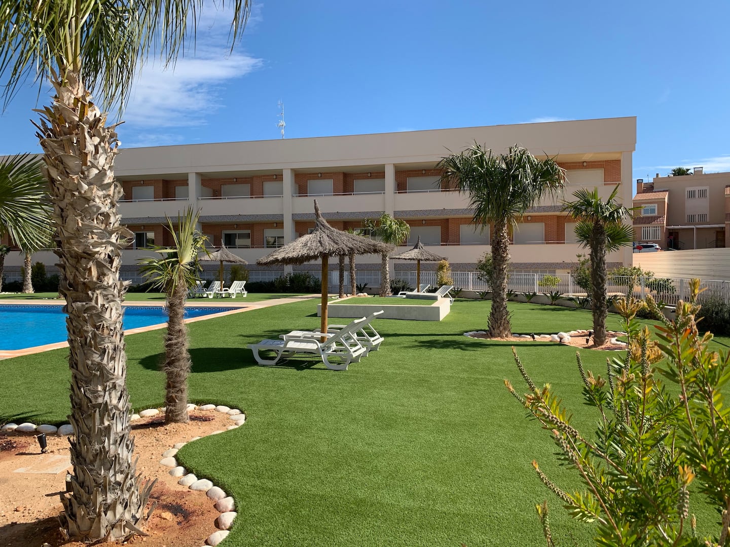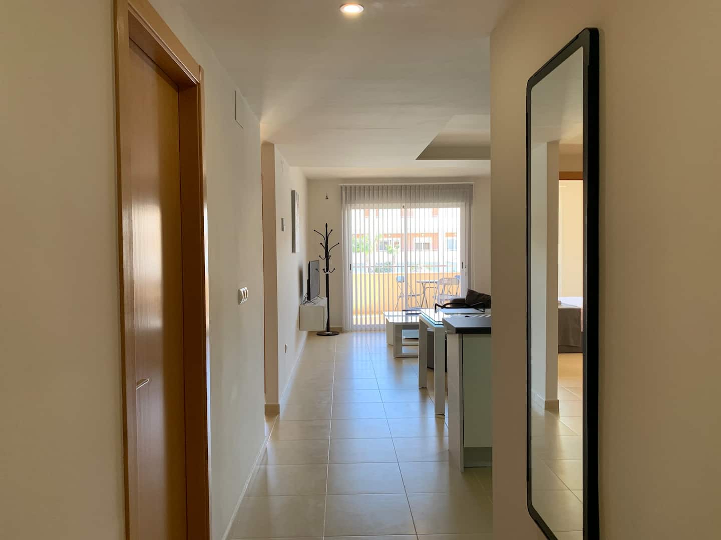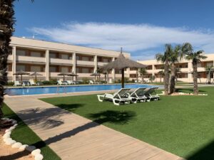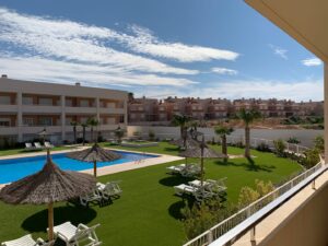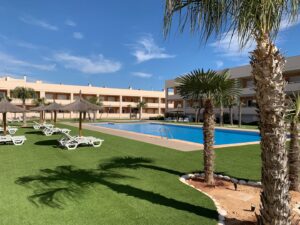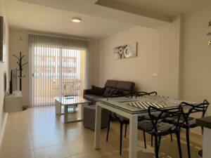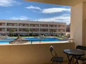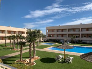Lýsing: Íbúð í Bahia Playa sem er íbúðakjarni á Gran Alacant svæðinu. Íbúar hafa aðgang að fallegum garði, leiksvæði fyrir börnin, sameiginlegri sundlaug og nuddpotti. Lyfta er í húsinu. Íbúðin samanstendur af 2 svefnherbergjum, 2 baðherbergjum, fallegu eldhúsi og stofu/borðstofu. Úr stofunni er gengið út á svalir þar sem er útsýni yfir sundlaugina og garðinn. Loftkæling er í íbúðinni.Gran Alacant er staðsett í ca 12 mínútna akstursfjarlægð frá Alicante flugvelli. Stutt er í alla þjónustu eins og verslanir, veitingastaði og bari. Carabassi ströndin er í aðeins 3 mínútna akstursfjarlægð og á hverjum fimmtudegi er götumarkaður sem er virkilega skemmtilegur og hægt er að finna allt til alls bæði handverk og matvöru.Sjá fulla lýsingu