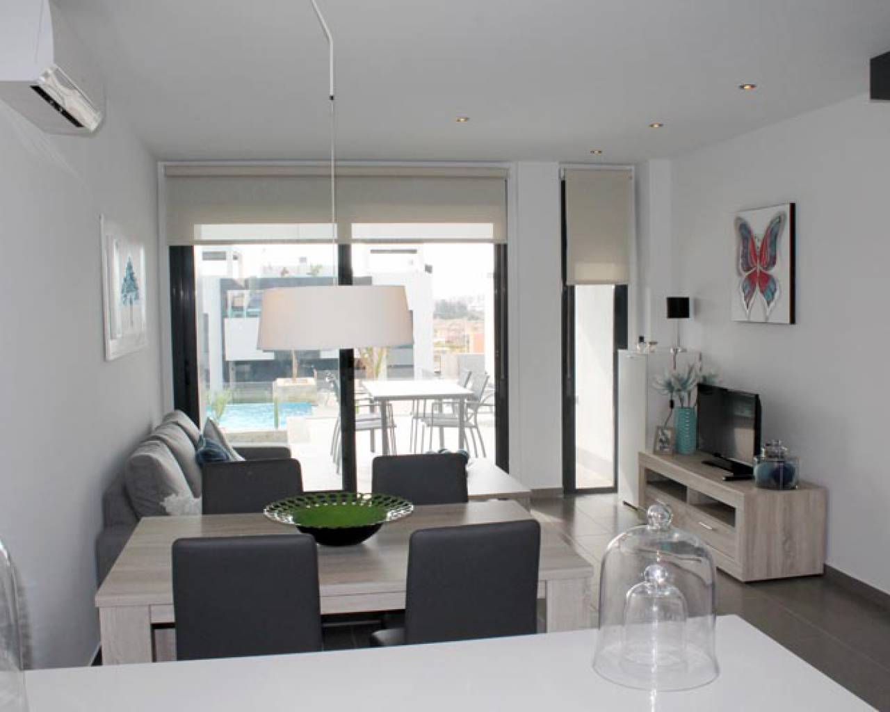 Staðsetningin er góð en stutt er í alla þjónustu eins og verslanir, veitingastaði og bari. Aðeins 1 km er í næstu strönd en góðar gönguleiðir eru allt um kring. Stutt er í góða golfvelli fyrir þá sem eru að leita að því en þar má nefna Villamartin, Campoamor og Las Colinas golfvellina.